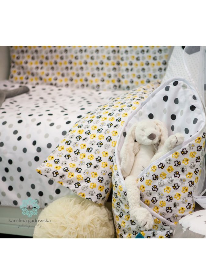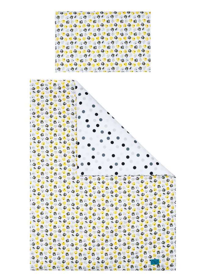 Dětská bavlněná 5-dílná souprava do postýlky Belisima Koťátka pro miminka. Souprava je z jedné strany celopotištěná puntíky a druhá strana je celopotištěná obrázky koťátek. Je vyrobena z měkkého, příjemného materiálu. Souprava obsahuje povlečení na polštářek cca 40x60 cm, povlečení na peřinku cca 100x135 cm, mantinel cca 180 cm, výplň polštářek a peřinka. Materiál 100% bavlna.