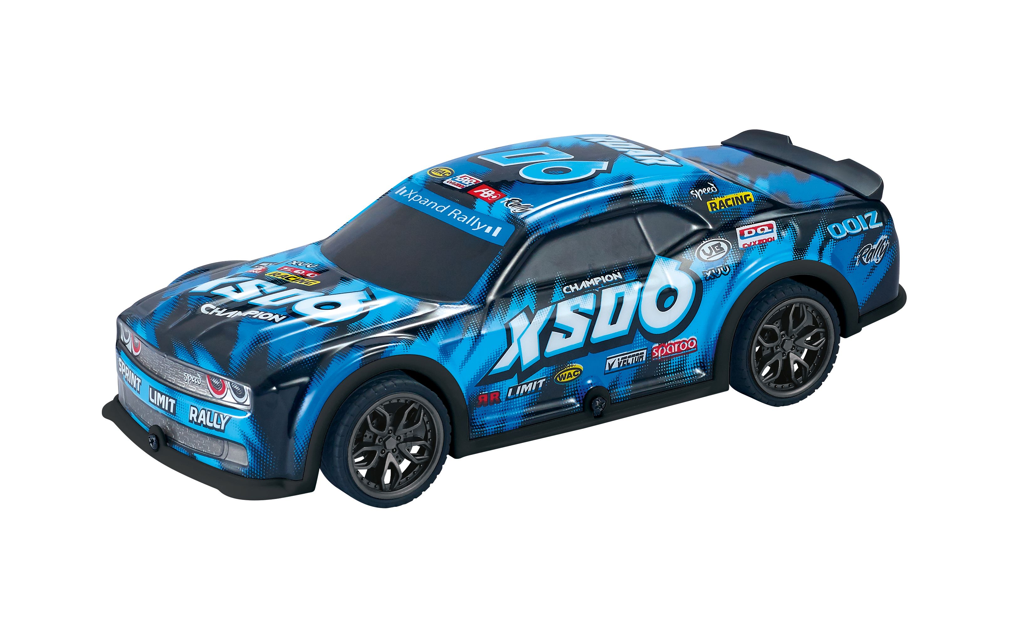 Auto závodní s efekty. Rozměry 19,5x8,5x5,5 cm. Na setrvačník. Světelné a zvukové efekty stiskem přední kapoty. 4xAG13 baterie součástí.