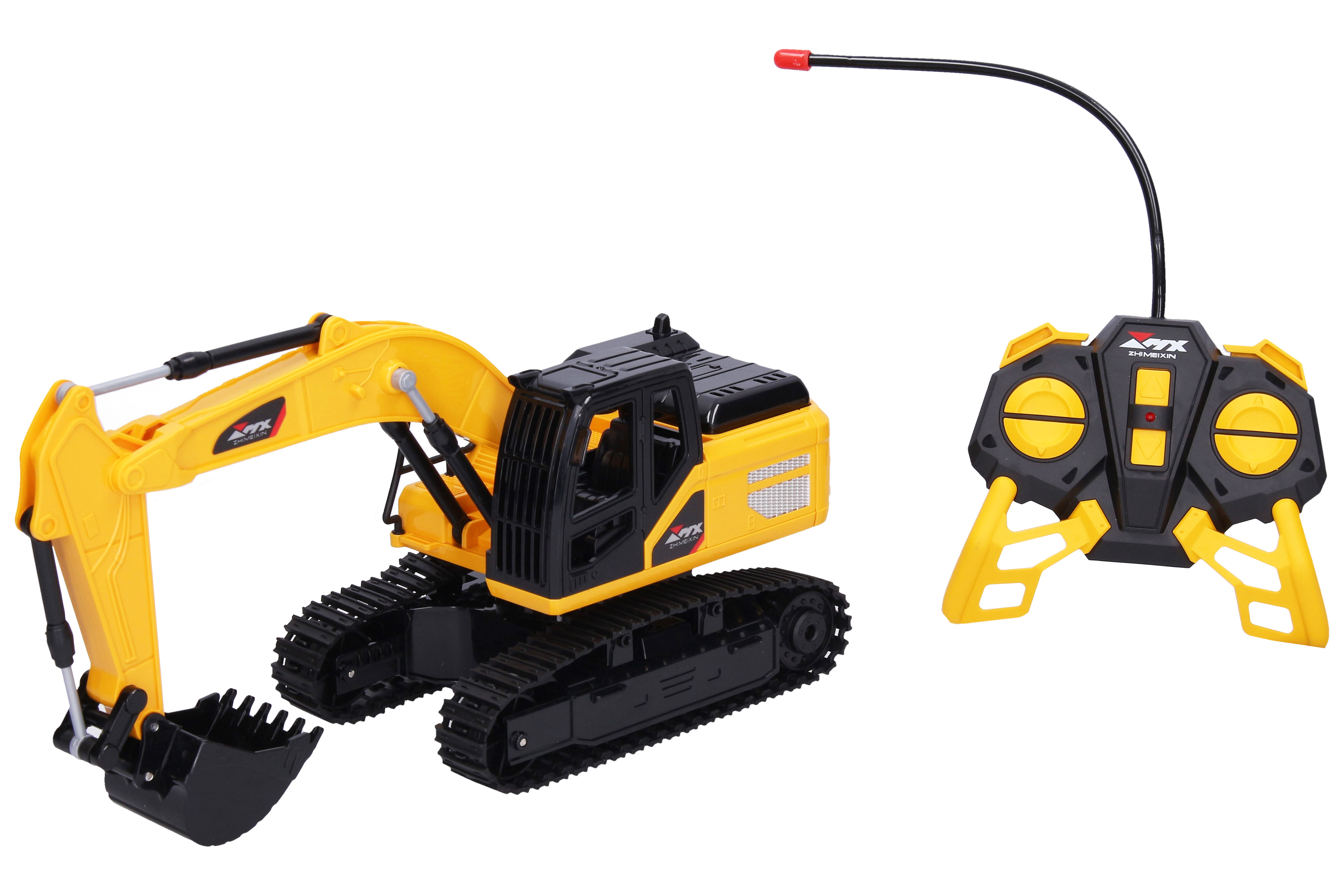 Bagr RC na dálkové ovládání. Rozměry 26x9,2x13 cm. Frekvence 40MHz. Manuální otáčení základnou. Dosah 15 m. Tlačítka na ovladači - zvedání a pokládání nabíracího ramene. Světelné efekty. 3.7V 500mAh bateriový pack do bagru součástí, 2xAA do ovladače nejsou součástí. USB kabel součástí. Přepínač ON/OFF na spodní straně bagru.