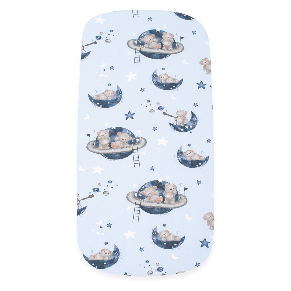 Bavlněné prostěradlo New Baby Teddy bear in space je vyrobeno z hladké a na dotek příjemné bavlněné látky-tkanina. Krásny detský motív, polahodí detským očičkám. Všitá gumička zabraňuje sklouznutí z matrace, zaručuje správné napnutí prostěradla a umožňuje přizpůsobit se jakémukoli tvaru. Prostěradlo je vhodné pro matrace o rozměrech 35 × 75 cm. Prostěradlo je klasické bavlněné, které není elastické a proto má roměry 50x80 cm, aby krásně sedělo na celé matraci i ze spodní strany.