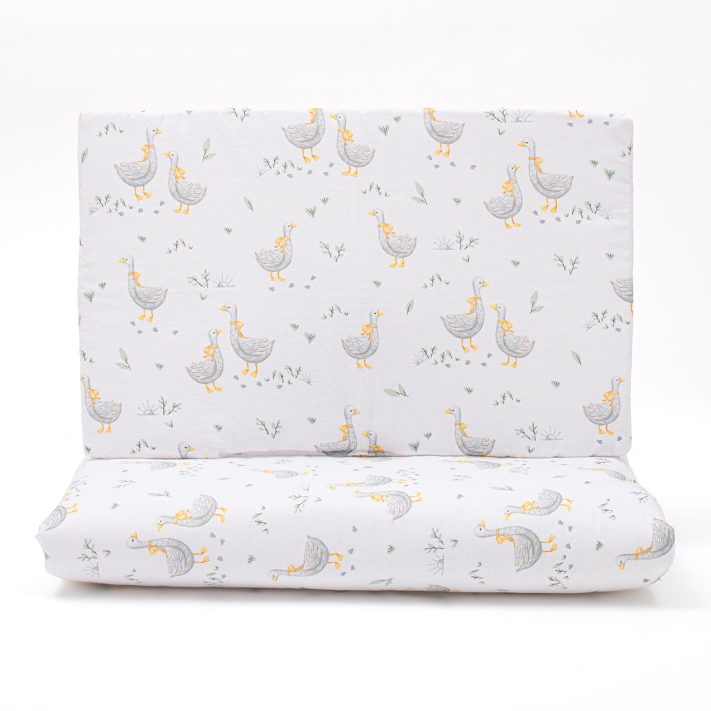 Složení: povlak 100% bavlna, výplň 100% polyester. Výška výplně je 3 cm a je vhodná i pro chladnější dny. Jednoduchá údržba praní v pračce. Možnost zakoupení celé kolekce Husičky, kde patří: zavinovačka, prostěradlo do kočárku, postýlky a bavlněný set.