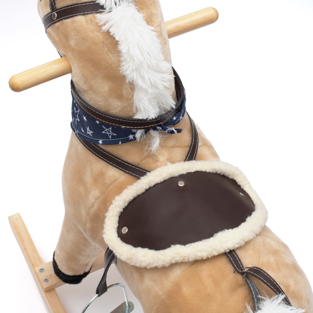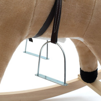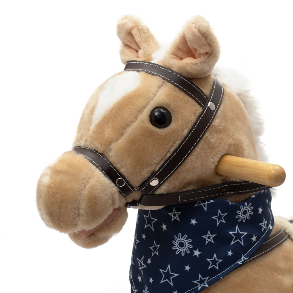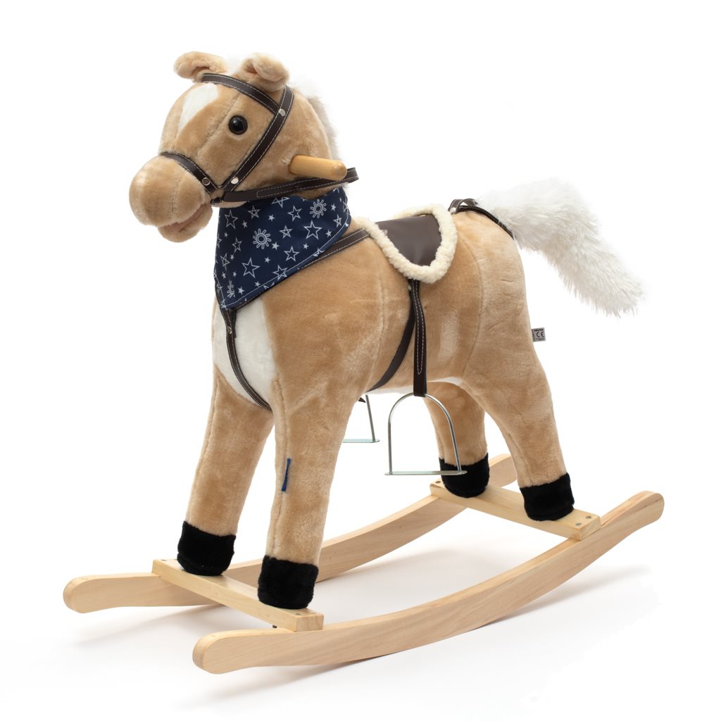 Měkoučký houpací koník Baby Mix byl navržen pro děti, které mají rády dobrodružství. Vypadá jako opravdový, takže se vaše dítě bude cítit jako skutečný jezdec. Koník je vyroben z měkkého plyše, kolem krku má ozdobný šátek a je vybaven dřevěnými houpacími lištami, jejichž profil chrání dítě před převrácením. Pohodlné sedlo, pevná uzda, kovové třmeny, dřevěné rukojeti a stabilní houpací lišty zajistí vašim kovbojům ještě větší stabilitu a pohodlí během houpání. Je vyroben z měkkého plyšového materiálu, pevné dřevěné lišty nebo rukojeti lze snadno odšroubovat. Po stisknutí tlačítek na ouškách koník vrtí ocáskem, hýbe tlamičkou, ozvou se zvuky cvalu, koník zařehtá a zazpívá kovbojskou písničku. Tři potřebné baterie AA 1,5 V se vkládají do pouzdra umístěného na bříšku koníka a nejsou součástí balení. Během houpání se dítě učí koordinovat pohyby svého těla s koníkem, což zlepšuje celkovou rovnováhu a motoriku dítěte.