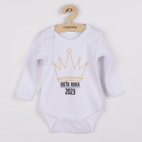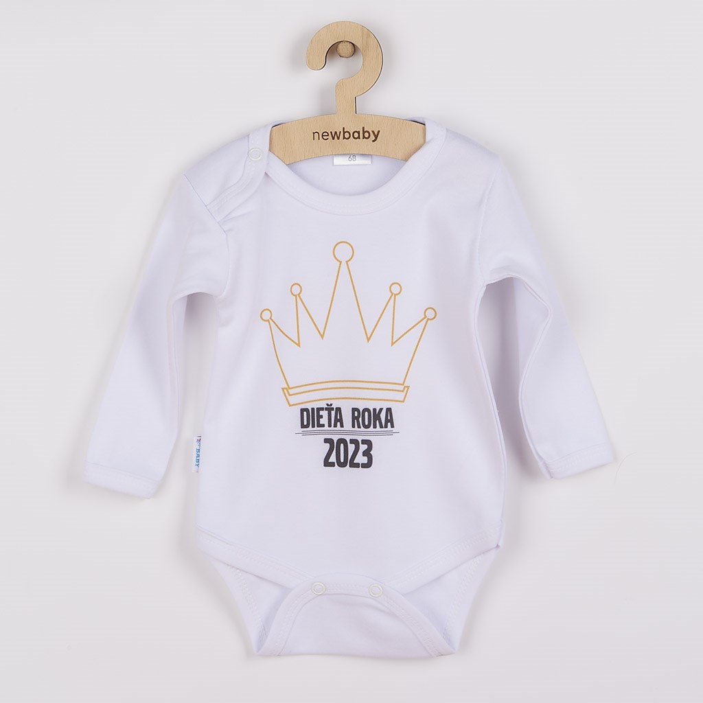 Originální bavlněné kojenecké body s dlouhým rukávem New Baby, s vtipným nápisem DIEŤA ROKA 2023. Barvy použité k potisku jsou certifikované a vhodné pro miminka. Je vyrobeno z příjemného a kvalitního materiálu, ve kterém se bude Vaše miminko cítit příjemně. Body má zapínáni na cvočky na ramínku a mezi nožičkami, což usnadňuje oblékání a přebalování. Dopřejte Vašemu miminku vyniknout v originálním body. Složení: 100% bavlna. Rozměry: obvod kolem hrudníku cca 34 cm, délka rukávu cca 16 cm, celková délka cca 30 cm.