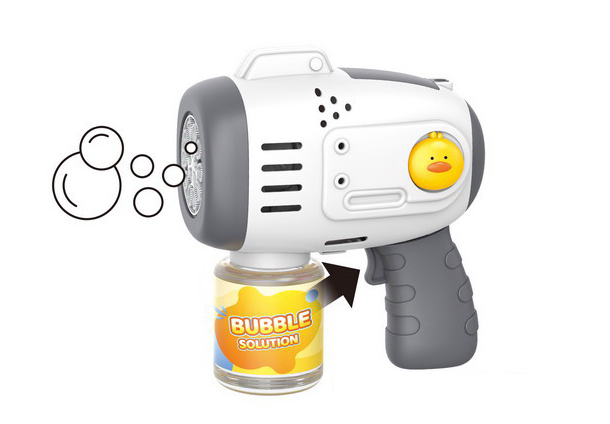 Bublifuk pistole. Objem 90 ml, náplň součástí balení. 4xAA baterie nejsou součástí balení.