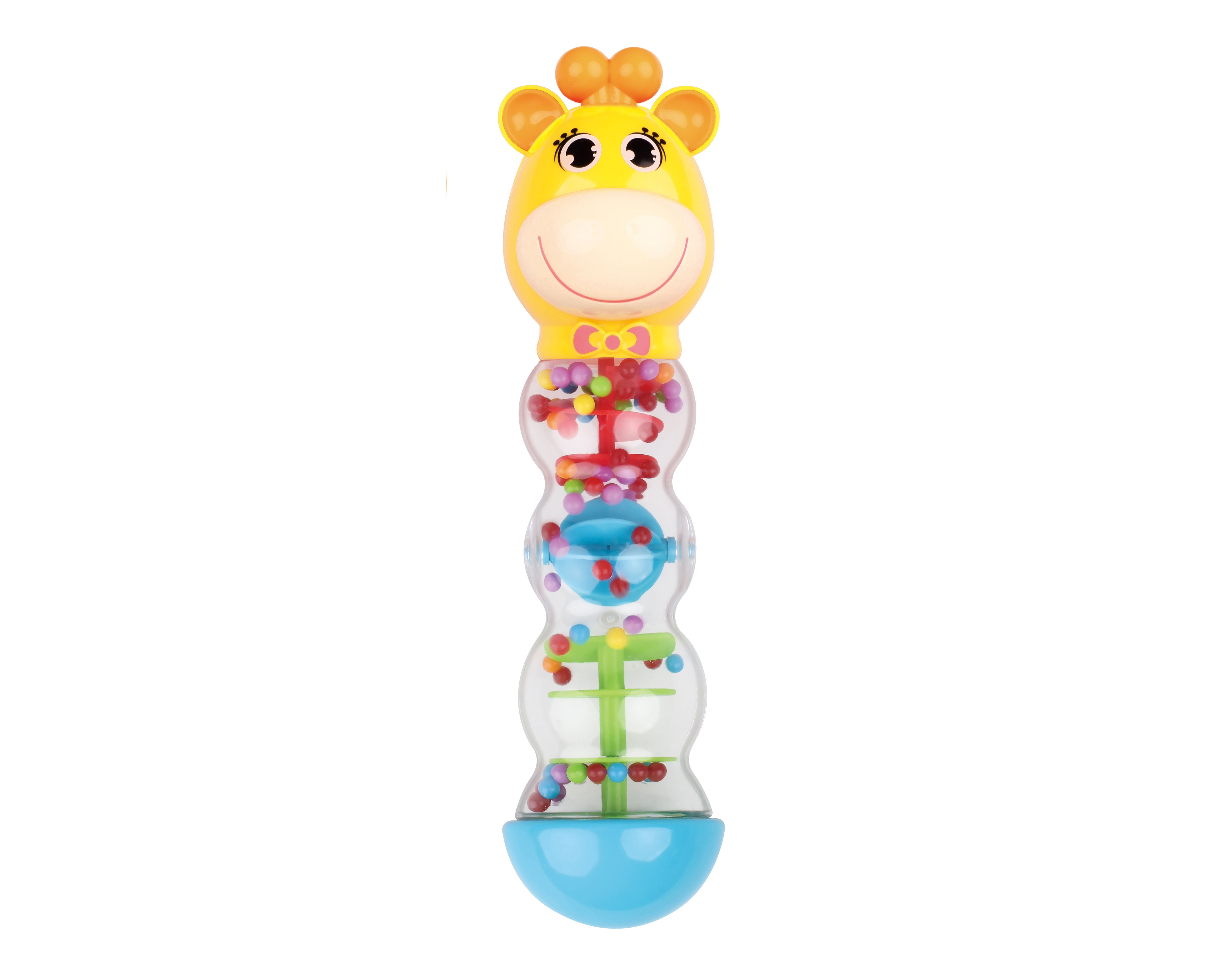 Chrastítko přesýpací žirafa. Velikost 24,5 cm. Přesné rozměry 7x6,5x24,5 cm.