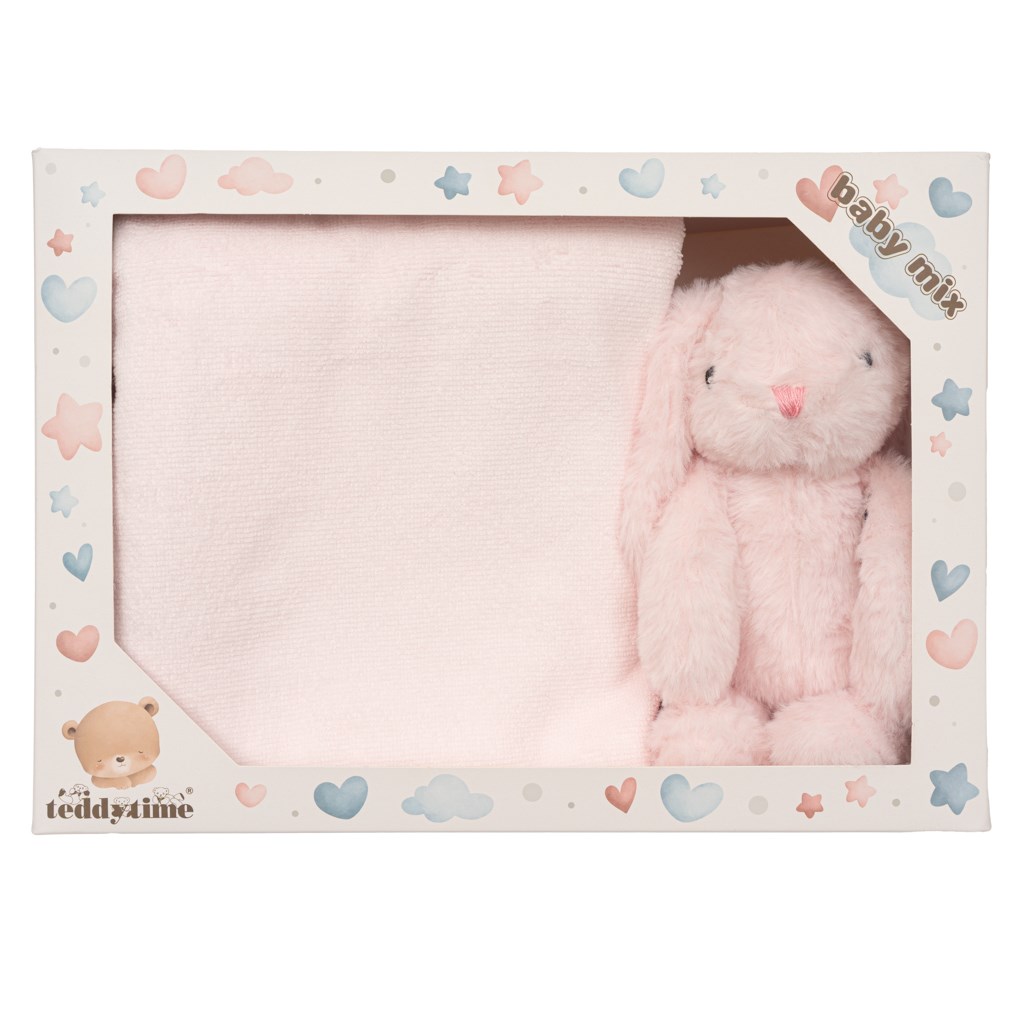 Dárková sada Baby Mix – plyšový králíček a osuška v kartonové krabičce