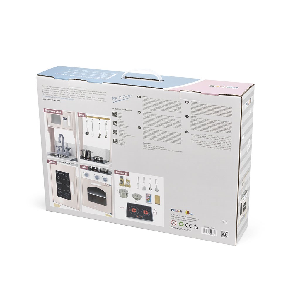 Každá kuchyňka má dřez, troubu a sporák, kde můžete vytvořit oblíbené pokrmy pro celou rodinu. Kromě toho si můžete své oblíbené recepty psát křídou na tabuli na přední straně kuchyňky. Postav hrnec na sporák, jehož hořáky se rozsvítí, a připrav libovolné jídlo pro panenky a medvídky. Vařič je vybaven potřebným příslušenstvím při vaření.