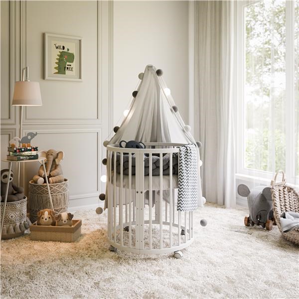 Naše postýlka 3 v 1 kombinuje funkčnost, estetiku a bezpečnost. Díky zaoblenému tvaru vypadá skvěle v každém interiéru a masivní dřevěná konstrukce zajišťuje odolnost po mnoho let.