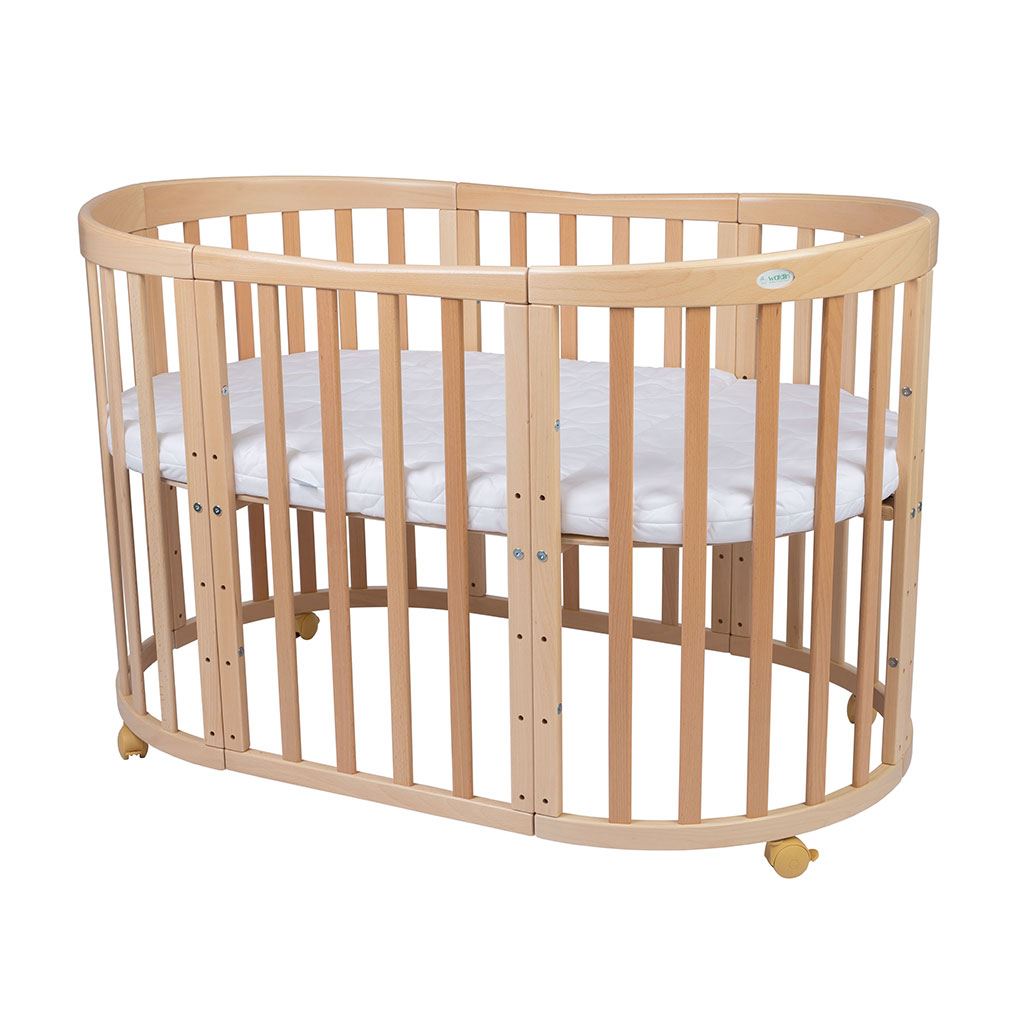 Oválná dětská postýlka 7v1 se s vaším dítětem po mnoho let mění a přizpůsobuje se jeho potřebám.