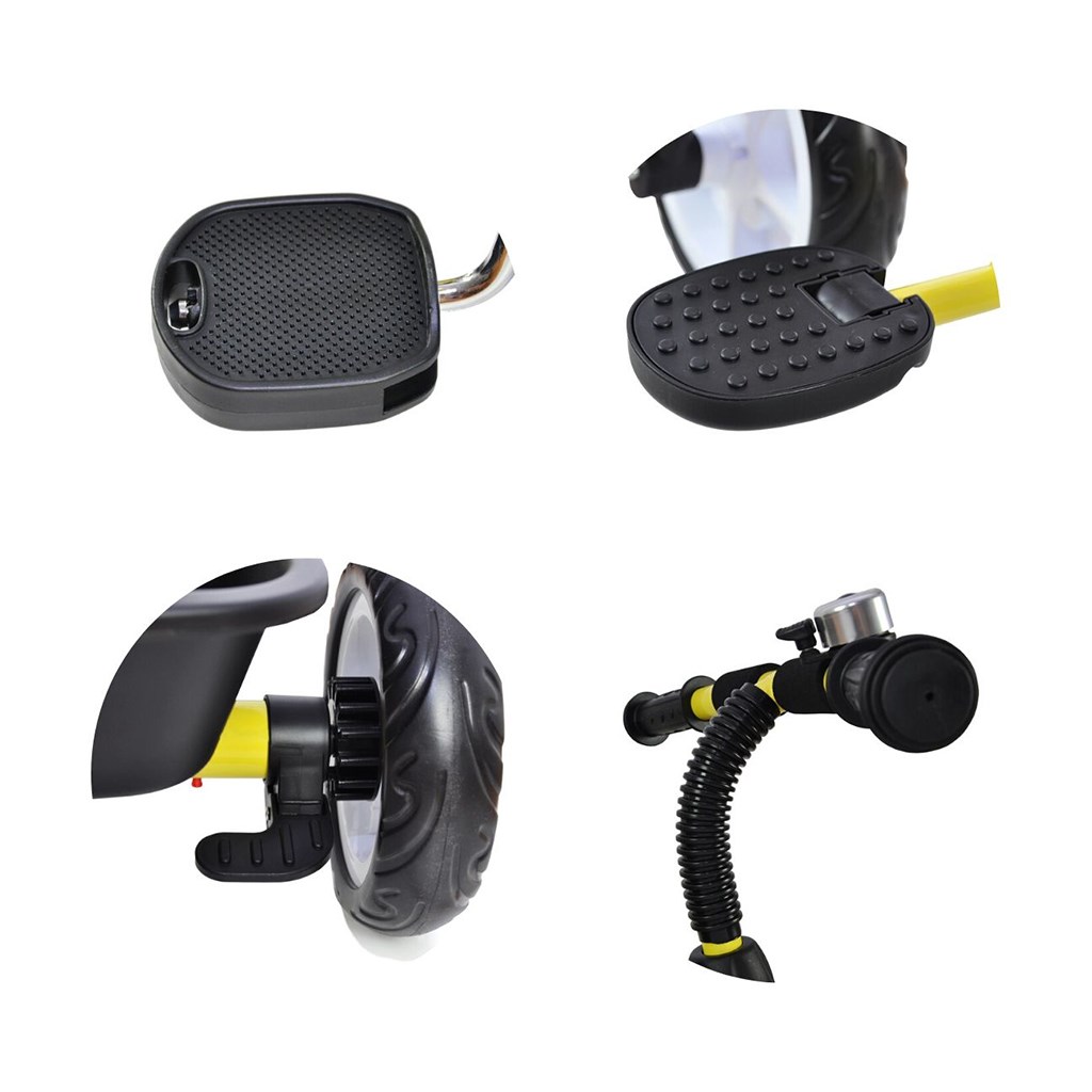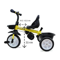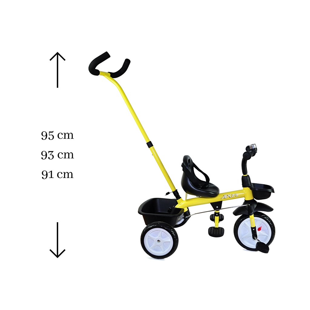Dětská šlapací tříkolka s rukojetí Axel je určena pro děti ve věku od 1 do 3 let. Je vyrobena z kvalitních a odolných materiálů. Má pohodlné a ergonomicky tvarované sedlo, jehož vzdálenost k řídítkům lze snadno nastavit a tím přizpůsobit tříkolku věku a výšce dítěte. Tříkolka patří k produktům skupiny GROW UP, tedy roste s dítětem. Na předním kole lze uvolnit náhon na pedály a pomocí vodící tyče tlačit malého závodníka, když mu dojdou síly. Široká kola vyrobená z tvrzené pěny EVA, zaručí pohodlí a odolnost na každém povrchu. Do dvou praktických košíků si váš malý závodník naskládá všechny potřebné hračky a může vyrazit vstříc dobrodružství. Kombinace kovové konstrukce a součástek vyrobených z nejkvalitnějších materiálů zaručuje odolnost za všech podmínek. Pro maximální bezpečí dítěte má tříkolka tříbodové bezpečnostní pásy.