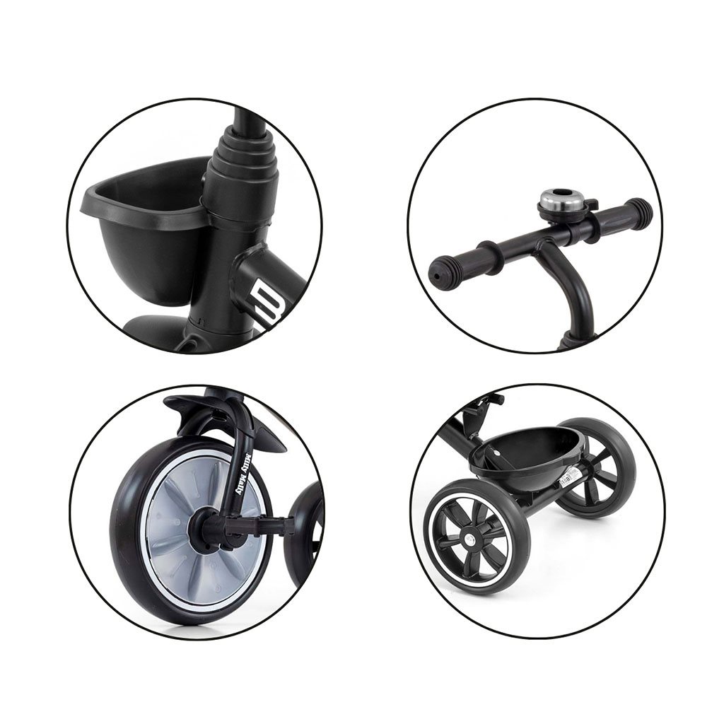 - 2 košíky, jeden na řídítkách a jeden v zadní části kola na hračky