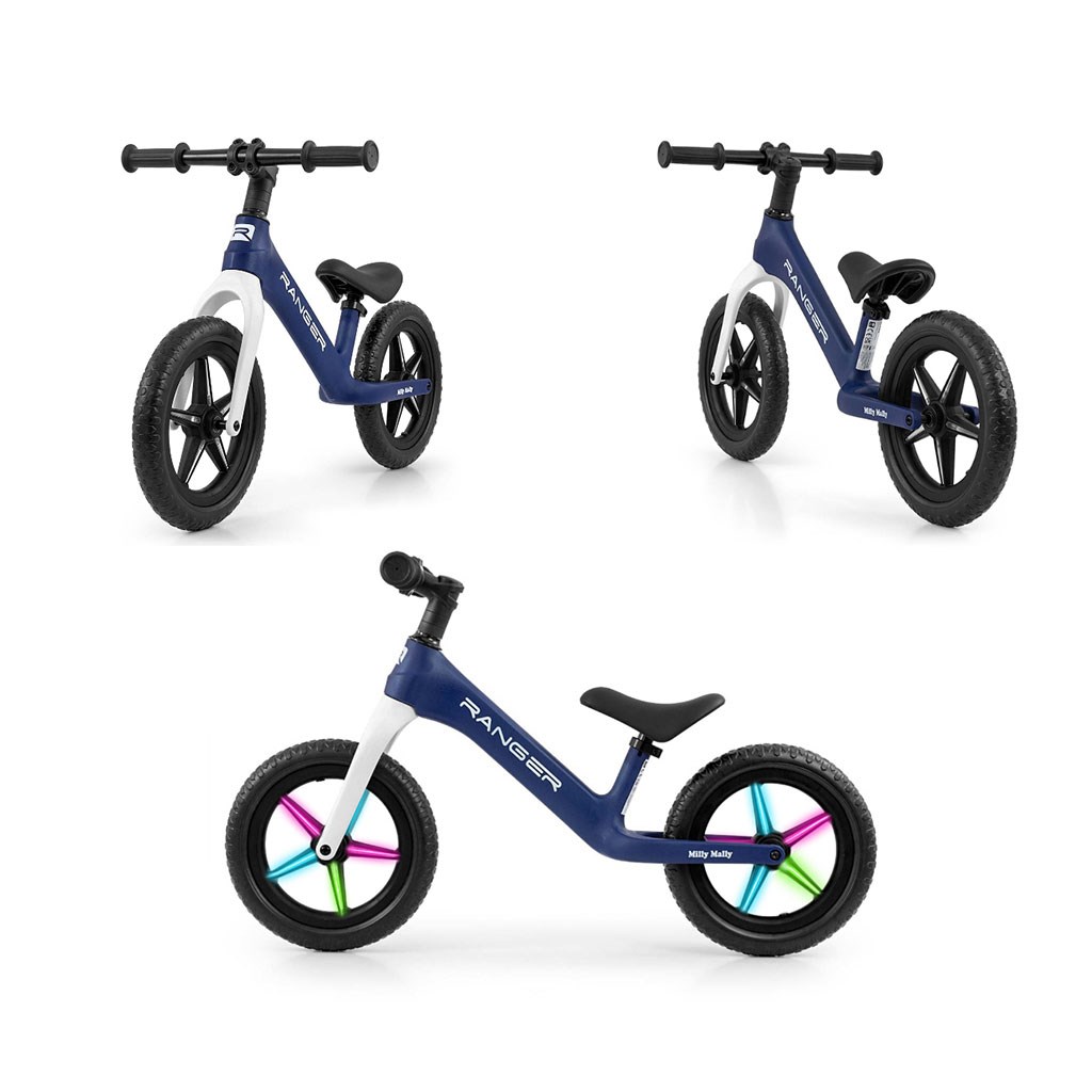 Odolná a vyrobená nejmodernější technologií z pěny EVA. 12" kola, která se nepropichují a není třeba je nafukovat, jsou bezúdržbová. Ergonomické výškově nastavitelné sedlo s měkkým polstrováním zajišťuje pohodlí dítěte a roste s ním. Kolo Ranger Flash má ložisková řídítka a ložisková kola. Protiskluzové rukojeti z měkké gumy zajišťují bezpečné uchopení a pohodlnou manipulaci.