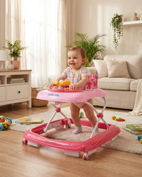 Multimediální chodítko Baby Mix se silikonovými kolečky. Chodítko je vybaveno pohodlným ergonomicky tvarovaným sedadlem, které zajišťuje správné držení páteře. Multimediální panel obsahuje různé světelné efekty, troubící volant, kterým lze otáčet, tlačítka pro přehrávání melodií a dvě světla. Krásné chodítko s hračkami okouzlí malé objevitele a umožní jim hrát si ještě déle. Chodítko je vybaveno speciálním systémem proti převrácení, který zajistí Vašemu dítěti pohodlí a bezpečnost.