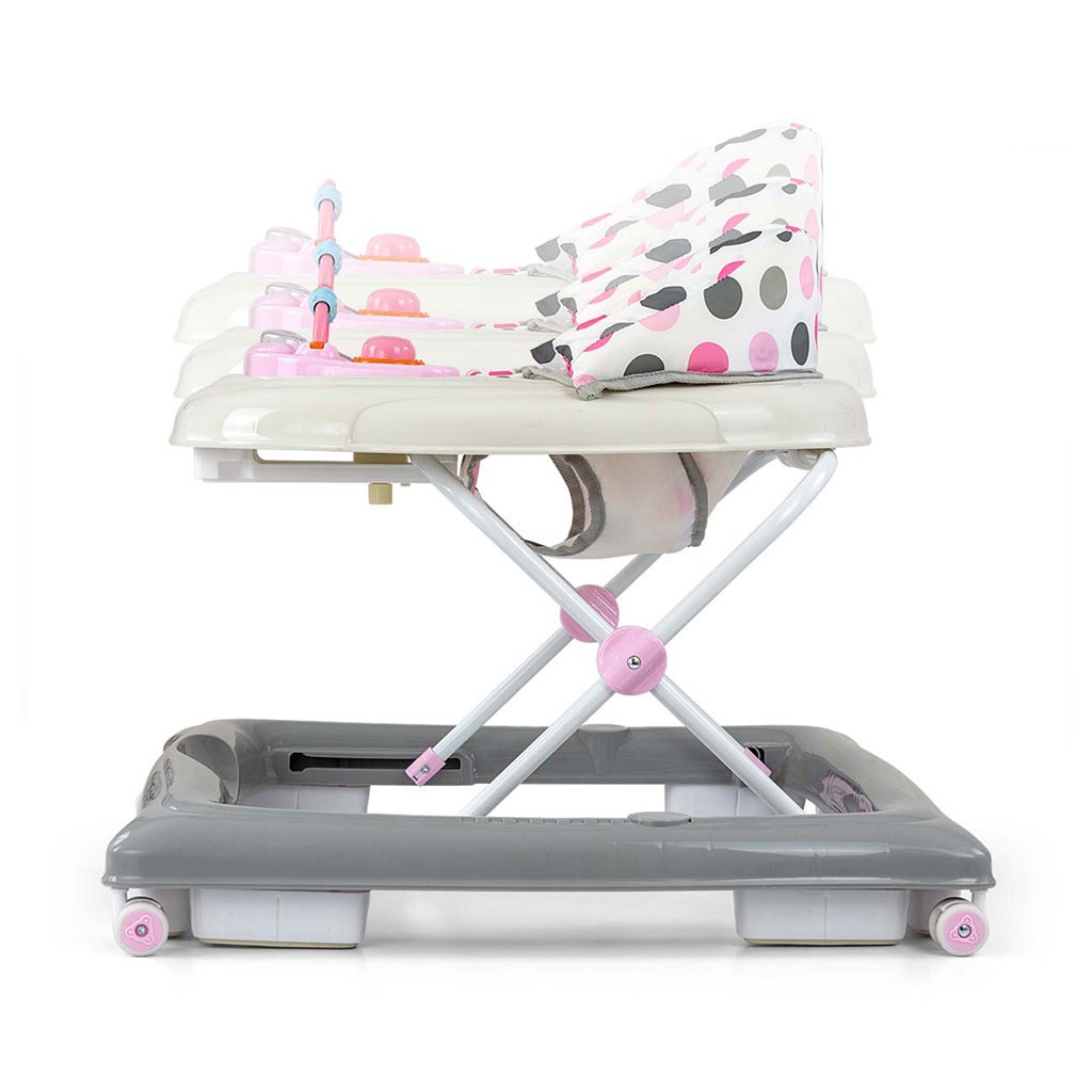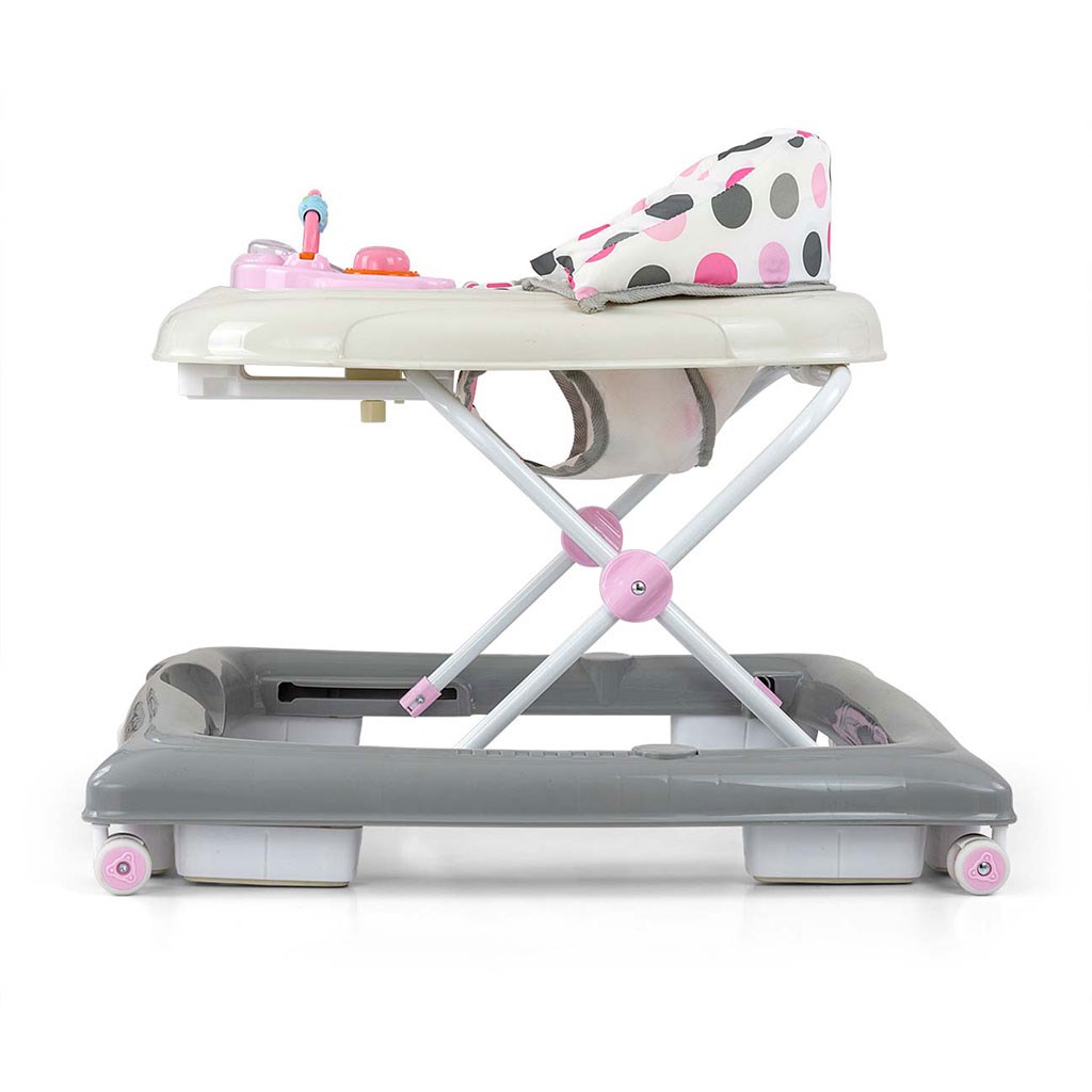 Výrobek má výukový panel, který obsahuje řadu překvapení čekajících na malé průzkumníky: světýlka, pískání, melodie, chrastítko, tlačítka a další pohyblivé prvky. Po sejmutí panelu z podnosu chodítka poslouží jako samostatná hračka, například jako společník na cesty, a deska poslouží jako hrací stolek.