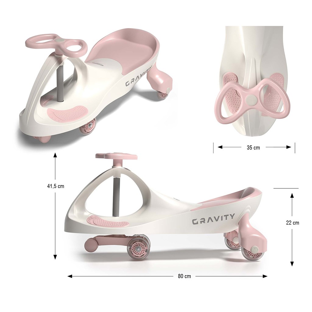 Gravitační odrážedlo GRAVITY je moderní dětské odstrkovadlo, které se pohybuje bez baterií a pedálů – stačí otáčet volantem a vozítko se samo rozjede. Ideální volba pro děti od 3 let, které milují pohyb, zábavu a chtějí jezdit samostatně doma i venku.