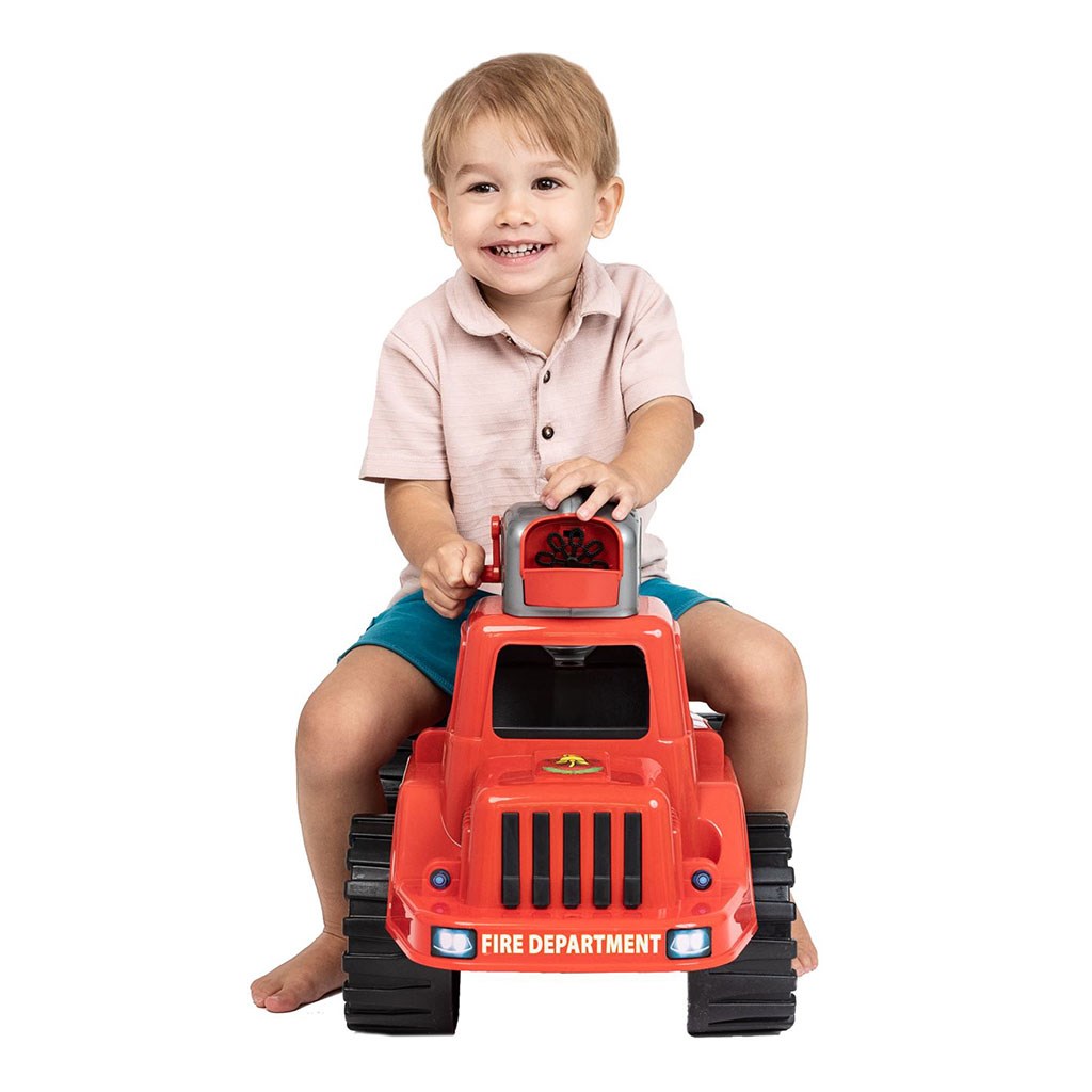 Hasičské odrážedlo s bublifukem Bayo dokáže vytvořit nekonečné množství bublin. Na kabině vozu je bublifuk, ze kterého po nalití mýdlového roztoku a roztočení klikou vylétají bubliny.