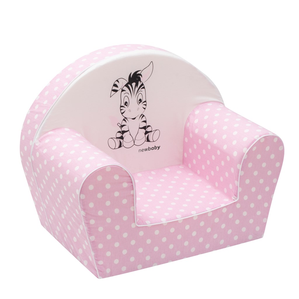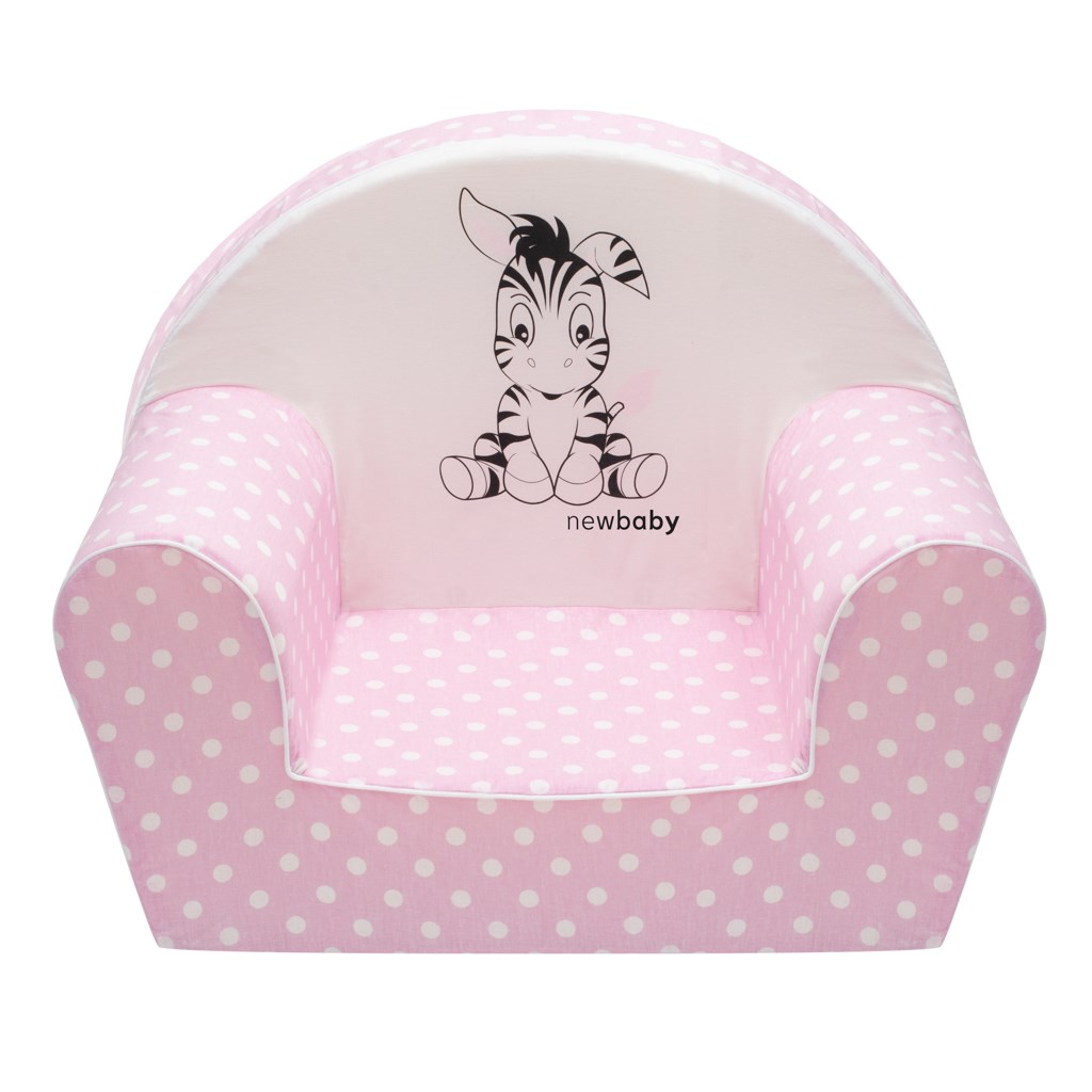 Dětské křesílko New Baby Zebra je skvělým a velmi oblíbeným doplňkem do dětského pokojíčku. Toto křeslo pro nejmenší děti je vyrobeno z měkkého materiálu a má snímatelný bavlněný potah, který lze prát. Potah má velmi příjemné barvy s potiskem puntíků a zdobí ho obrázek roztomilé zebry, čímž dítě zaujme. Dítěti zajistí komfort a vkusně doplní dětský pokojíček. Křeslo může sloužit během odpočinku či koukání na pohádky, nebo také při zábavě. Rozměry: vxš: cca 42x53 cm, výška opěradla cca 29 cm, šířka sedadla cca 25 cm. Složení: potah 100% bavlna, vnitřní materiál: polyuretánová pěna.