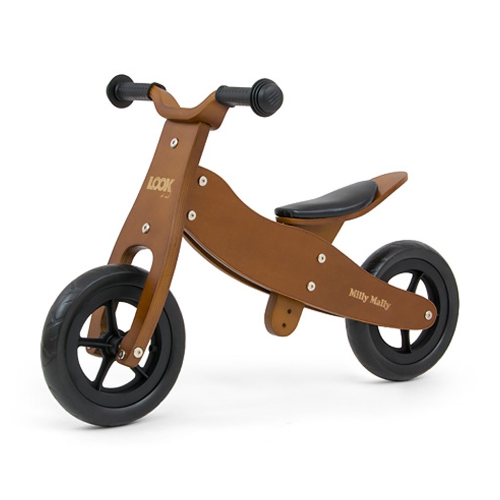 Dětské multifunkční dřevěné odrážedlo Milly Mally Look 2v1 je ideálním řešením pro děti, které se právě začínají učí jezdit na kole a přitom ještě nejsou schopné udržet rovnováhu na dvou kolech. Hlavní výhodou odrážedla Look je, že tříkolku snadno a rychle předěláte na odrážedlo na dvou kolech. Je vyrobeno z pevného dřeva a ozdobeno krásnými veselými barvami a obrázky. Pěnová kola zajistí pohodlí během jízdy a neunaví vašeho malého závodníka. Dostatečný rozvor kol poskytuje extrémní stabilitu, bezpečnost a pohodlí doma i venku. Měkké a neklouzavé rukojeti zajistí pevné držení řídítek. Nastavitelná výška sedadla umožní přizpůsobit odrážedlo potřebám dítěte. Krásné multifunkčí odrážedlo padne do oka jak holčičkám tak chlapečkům a skvěle je připraví pro jízdu na kole bez nutnosti montáže bočních koleček.