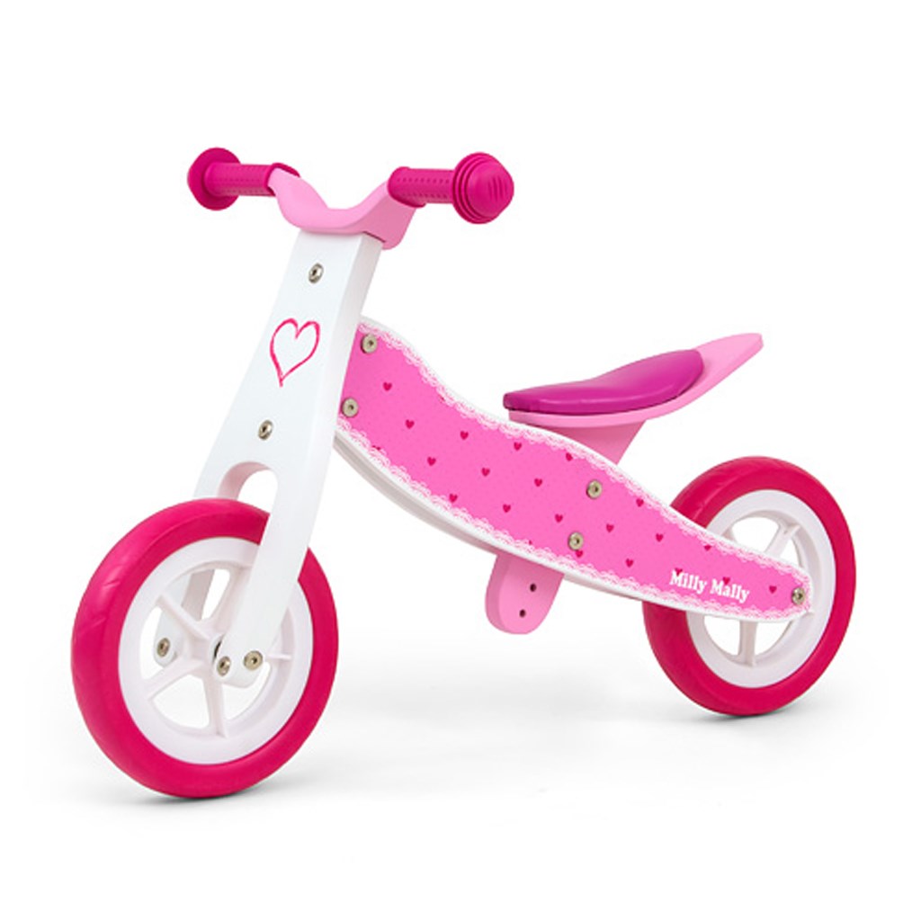 Dětské multifunkční dřevěné odrážedlo Milly Mally Look 2v1 je ideálním řešením pro děti, které se právě začínají učí jezdit na kole a přitom ještě nejsou schopné udržet rovnováhu na dvou kolech. Hlavní výhodou odrážedla Look je, že tříkolku snadno a rychle předěláte na odrážedlo na dvou kolech. Je vyrobeno z pevného dřeva a ozdobeno krásnými veselými barvami a obrázky. Pěnová kola zajistí pohodlí během jízdy a neunaví vašeho malého závodníka. Dostatečný rozvor kol poskytuje extrémní stabilitu, bezpečnost a pohodlí doma i venku. Měkké a neklouzavé rukojeti zajistí pevné držení řídítek. Nastavitelná výška sedadla umožní přizpůsobit odrážedlo potřebám dítěte. Krásné multifunkčí odrážedlo padne do oka jak holčičkám tak chlapečkům a skvěle je připraví pro jízdu na kole bez nutnosti montáže bočních koleček.