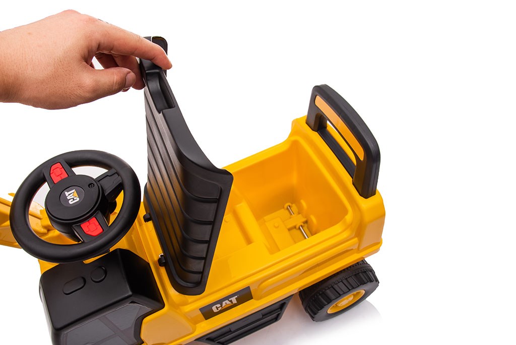 Dětské odrážedlo CAT Baby Mix je vyrobené z kvalitního plastového materiálu. Jeho vzhled upoutá pozornost nejen každého dítěte, ale i rodiče. S autíčkem si děti užijí spoustu legrace a zábavy protože má vzhled skutečného Caterpillaru, komfortní široké sedadlo s úložným prostorem, volant a kvalitní plastová kola. Odrážedlo je také vybaveno tlačítky na volantu se zvukovými efekty. Baterie nejsou součástí balení (2x AA 1.5V).