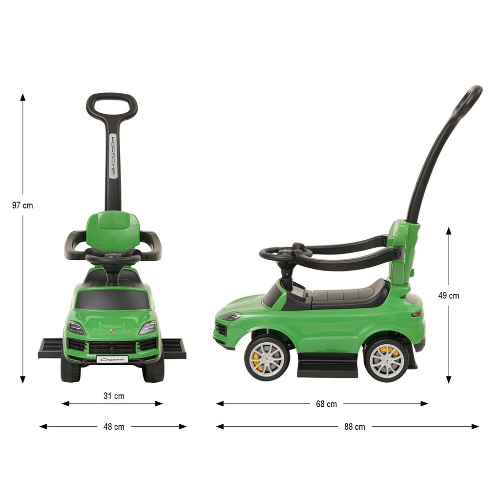 Odrážedlo s rukojetí Porsche Cayenne Milly Mally je realistické autíčko pro dítě, které spojuje funkci tlačítka a klasického odrážedla.