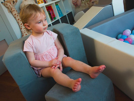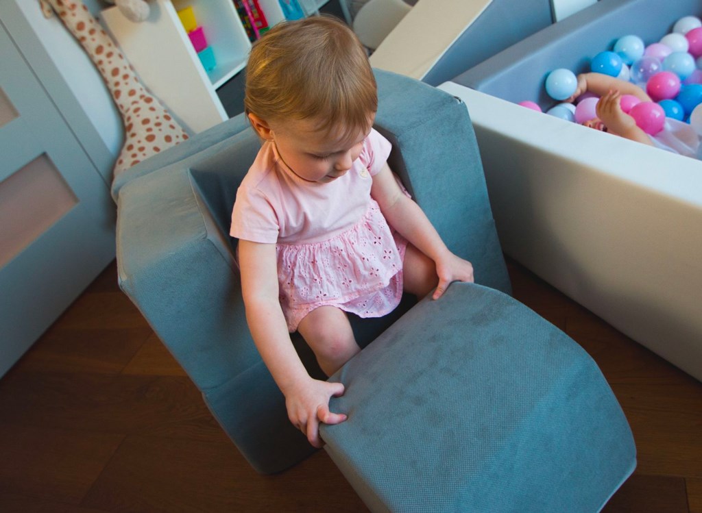 Sedačka se velmi rychle stane oblíbeným místem vašeho dítěte k odpočinku nebo hraní. A díky svému všestrannému a elegantnímu stylu se snadno vejde do interiéru každé místnosti. Skládá se ze dvou částí. Z kostky a křesílka, které má vyklápěcí opěrku rukou. Po sklopení opěrky rukou, stačí už jen do středu doplnit kostku a z křesílka je sedačka-lenoška.