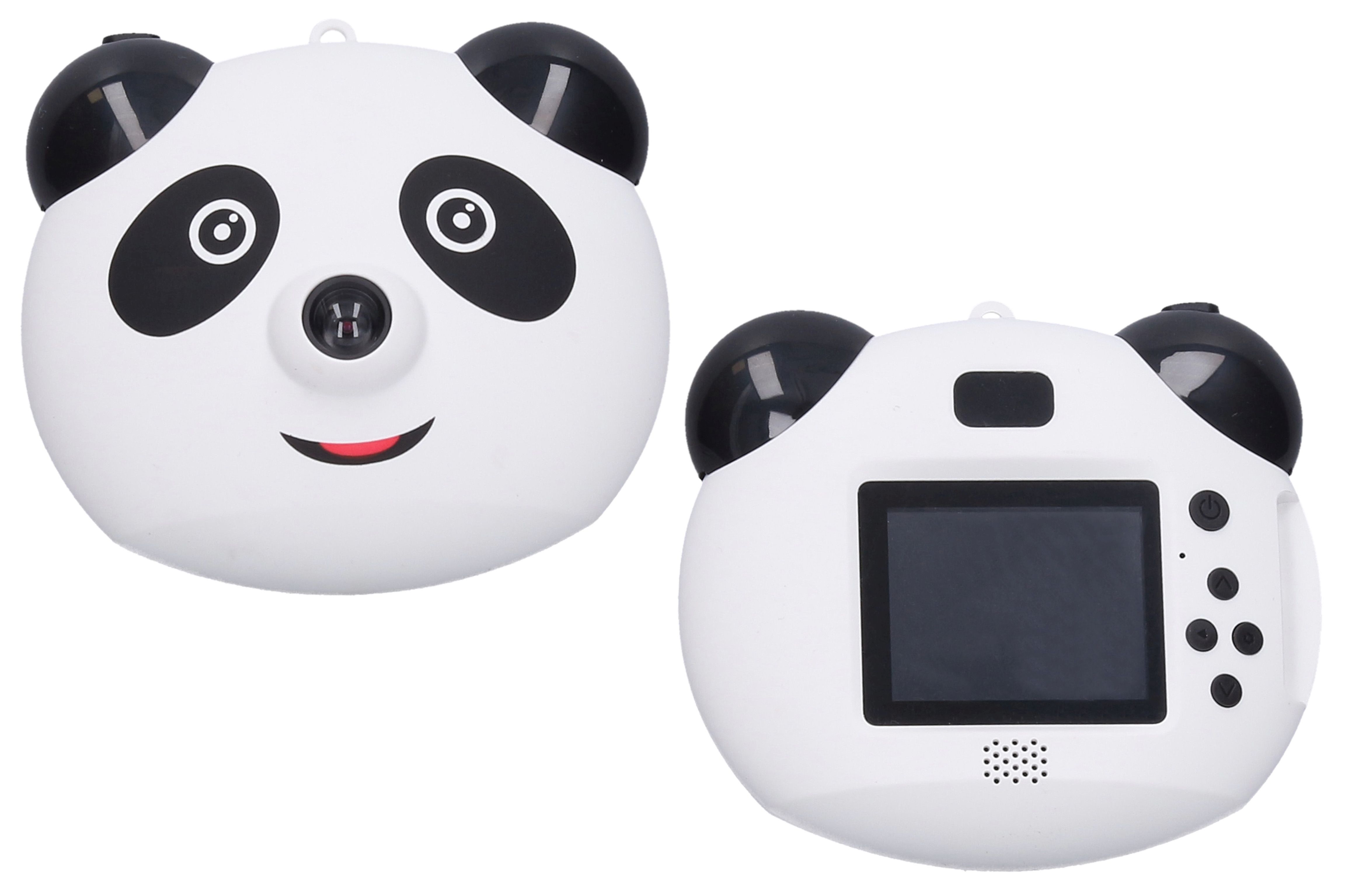 Dětský digitální fotoaparát Panda - foto 40Mpx, video Full HD. Rozměry 10,5x4x9,5 cm. Rozlišení fotografií 40 megapixelů, videa Full HD (1920x1080). Časovač, vložení času, různé efekty (rámečky, vložené animace, filtry) fotografií, hry, mp3 přehrávač, 2,0 palcový displej. Vestavěná 400mAh Li-ion baterie, USB kabel a popruh součástí. Provoz 100 min. Kompatibilní s micro SD kartami - max. 32GB. Paměťová karta není součástí.