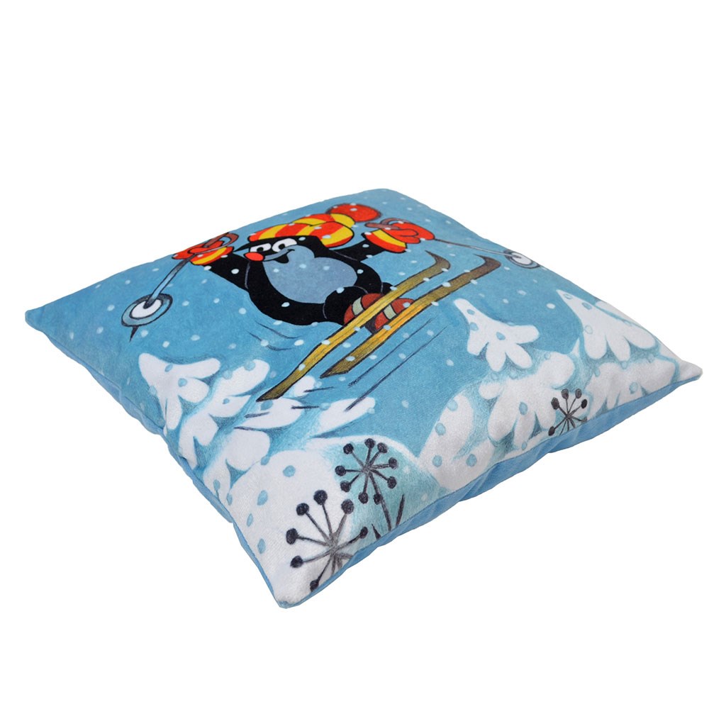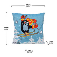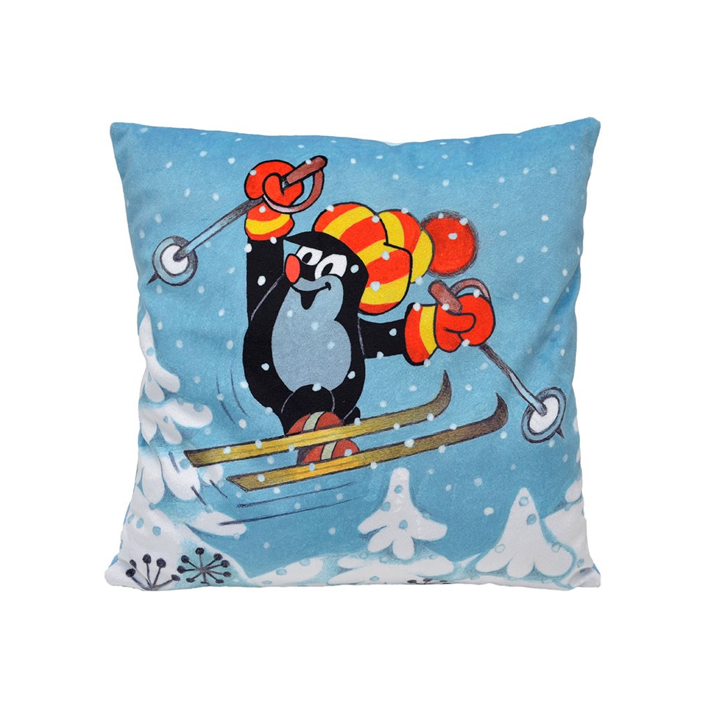 Měkoučký polštářek s motivem Krtečka na lyžích, vhodný do postýlky, na cesty i jako dekorace do pokojíčku. Materiál mikrovelur, obrázek tisk, náplň duté vlákno. Zadní strana sv. modrá.