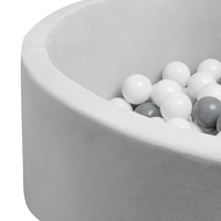 Dětský suchý bazén s míčky New Baby. Bazének plný kuliček je skvělá zábava, kterou si oblíbí každé dítě a poskytne mu spoustu zábavy a radosti. Zároveň podpoří tak smyslový vývoj dítěte a vzdělává. Pružná pěna bazénu zajistí bezpečnost a pohodlí. Hodí se do moderního i klasického interiéru, do dětského pokoje a obývacího pokoje. Součástí bazénku je balení s míčky. V jednom balení je 150 ks plastových certifikovaných míčků v bílé a šedé barvě. Splňují bezpečnostní normy pro děti, jako je EN-74 nebo CPSC.