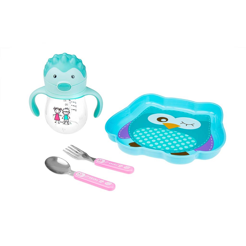 Představujeme plastový talíř AKUKU. Byl navržený tak, aby svými tvary a barvami motivoval dítě k samostatnosti při jídle. Je vyroben z bezpečných materiálů určených pro styk s potravinami. K dispozici ve dvou provedeních - slon a sova.