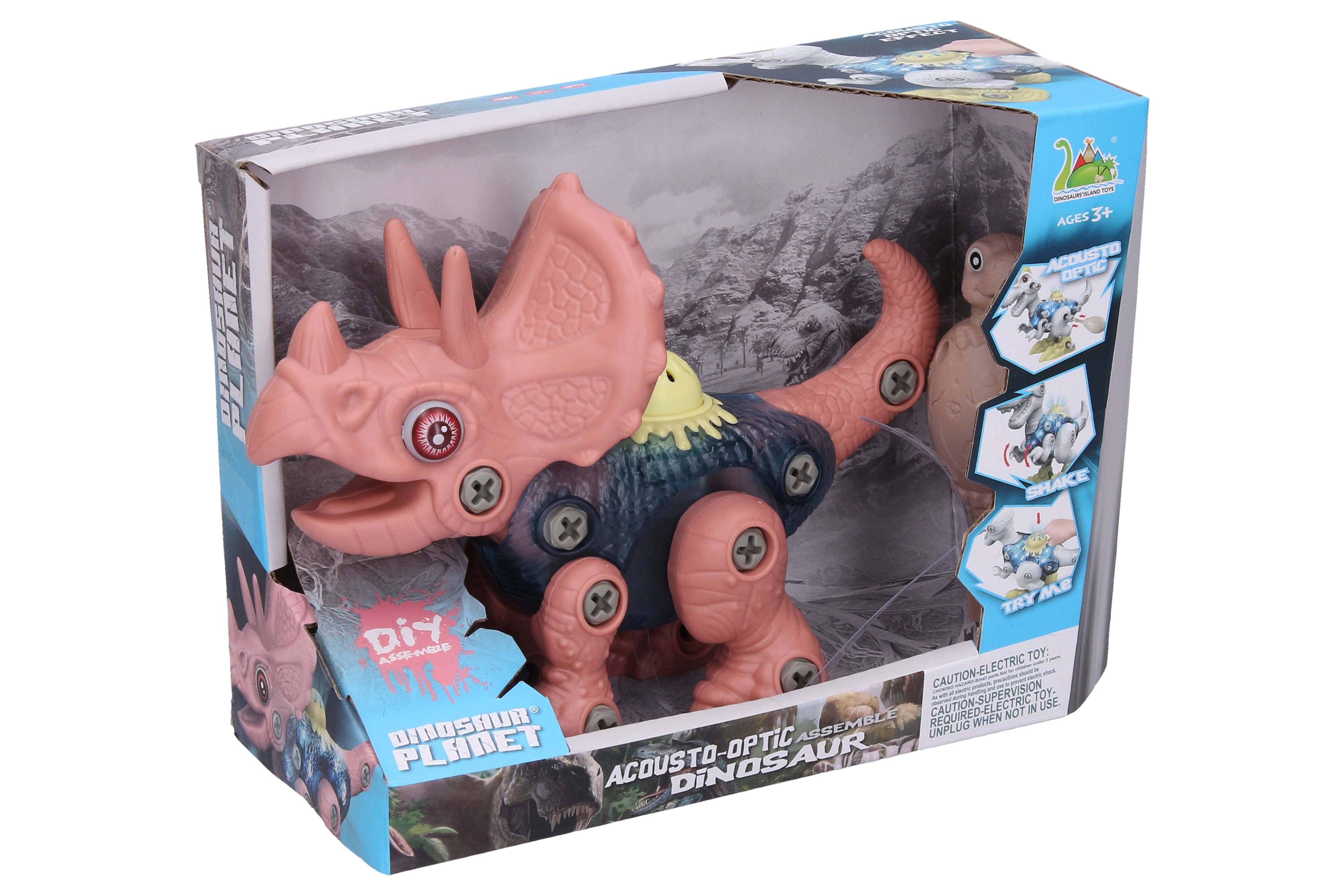 Dino šroubovací. Velikost 17cm. Po zmáčknutí tlačítka na zádech vydává zvuky a bliká. Balení obsahuje dinosaura a šroubovák. 2x 1,5V AG13/LR 44 baterie součástí balení