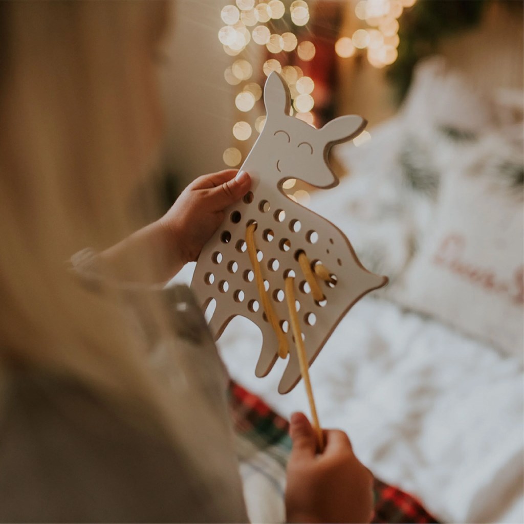 Vzor pro pokročilé proplétající se. Obsahuje srnku a šňůrku.