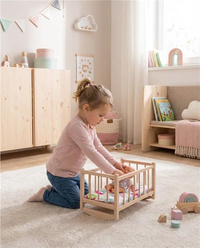 Dopřejte dětem kousek skutečného kouzla s touto nádhernou dřevěnou kolébkou pro panenky, doplněnou o povlečení i matraci. Je to perfektní přírůstek do dětského pokojíčku nebo herního domečku.