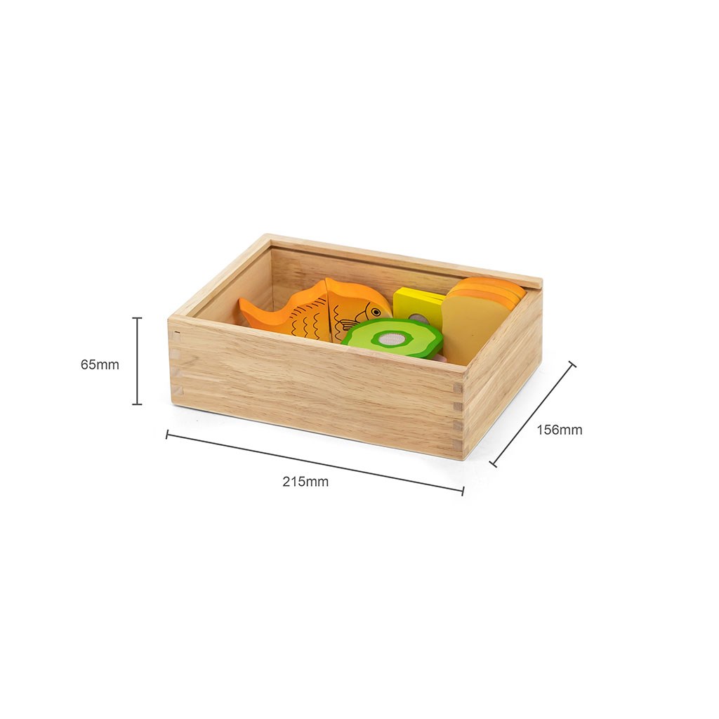 Dřevěná sada pro výuku vaření od společnosti Viga je vynikající hračkou pro rozvoj kulinářských a manuálních dovedností vašeho dítěte. Sada obsahuje prkénko a nůž, takže dítě pochopí krájení potravin na kousky a zároveň rozvíjí koordinaci ruka-oko. Každý dílek potraviny má suchý zip pro snadné sestavení a rozdělení.