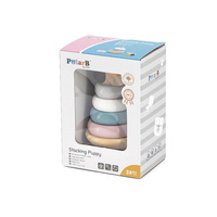 Pastelový pes je vyroben ze 6 disků-bloků různých velikostí a barev, včetně jednoho ve tvaru psí hlavy. V základně je kolíček pro umístění prvků věže. Tato hračka je ideální pro batolata, která začínají skládat kostky. Pyramida podporuje rozvoj koordinace ruka-oko, logického myšlení a navíc podporuje učení rozpoznávání barev.