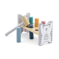 Barevná, dřevěná zatloukačka Viga, kterou si zamiluje každé malé dítě. Dřevěná deska se šesti otvory a paličkou pro nácvik zatloukání. Po zatlučení kolíků se stojánek může obrátit a začít zatloukat znovu. Sada obsahuje stojánek, 6 barevných kolíků a paličku. Hračka určená pro děti od 2 let. Naší prioritou je bezpečnost a kvalita našich výrobků, a proto barvy použité na hračkách nejsou toxické a splňují bezpečnostní standardy (EN71 a ASTM). Pro děti od 2 let. Hračka je vhodná jako krásný dárek, který si vaše děti zamilují.