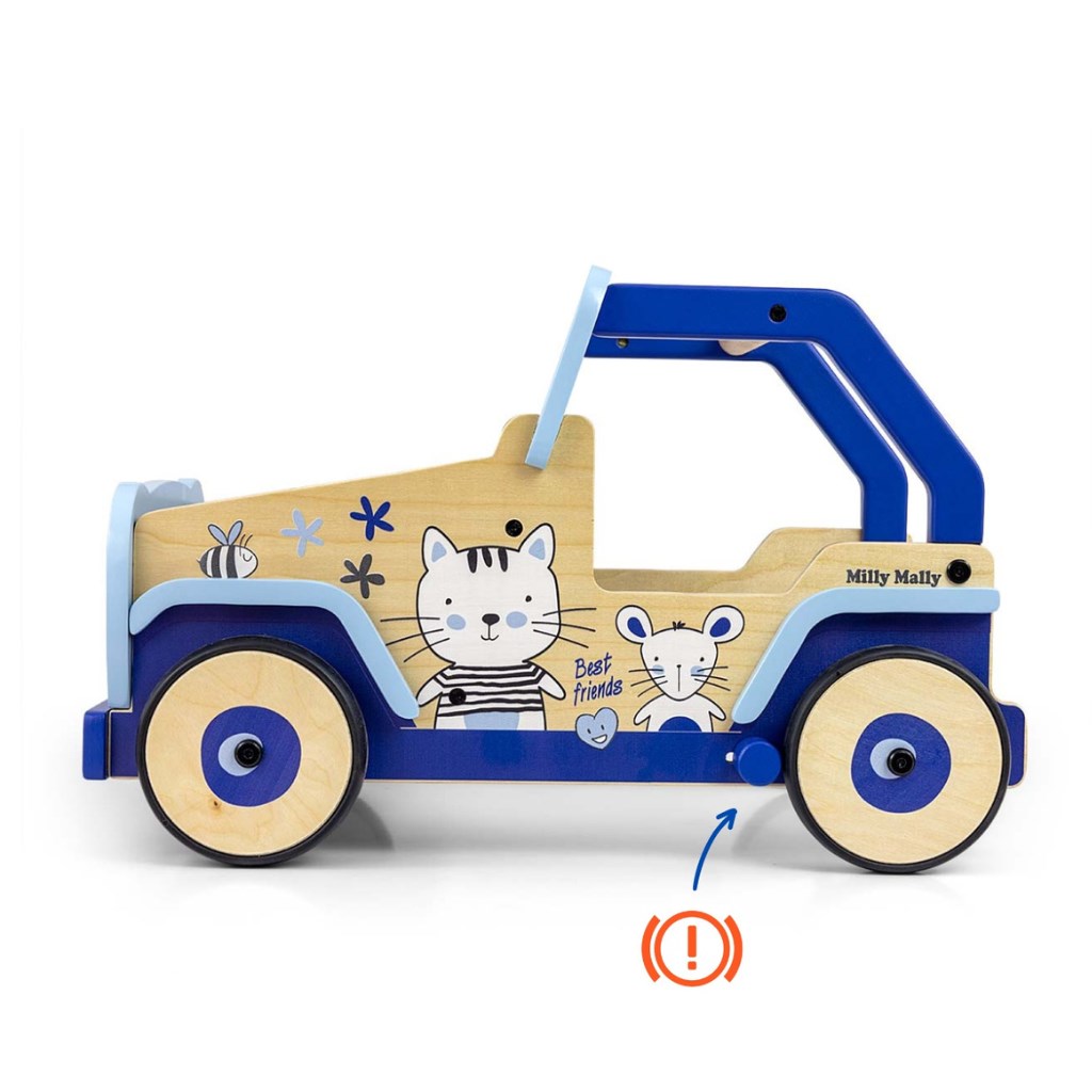 Toto dětské chodítko, inspirované legendárními terénními auty, je vyrobeno z vysoce kvalitního dřeva a ekologických materiálů. Kryty kol jsou vyrobeny z měkkého TPR plastu, který je flexibilní a odolný a umožňuje použití na všech površích bez poškození nebo poškrábání. Neobsahují změkčovadla a jsou šetrné k životnímu prostředí.