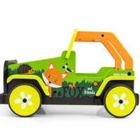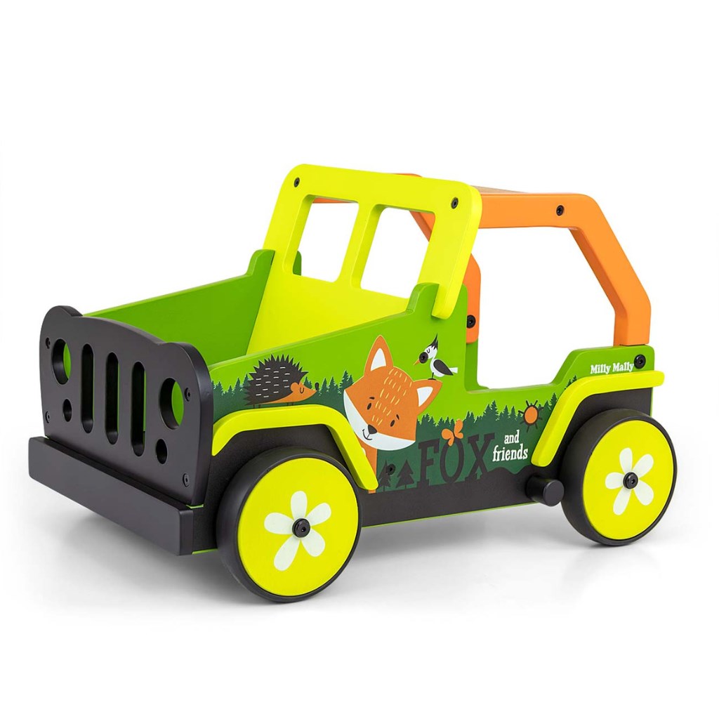 Toto dětské chodítko, inspirované legendárními terénními auty, je vyrobeno z vysoce kvalitního dřeva a ekologických materiálů. Kryty kol jsou vyrobeny z měkkého TPR plastu, který je flexibilní a odolný a umožňuje použití na všech površích bez poškození nebo poškrábání. Neobsahují změkčovadla a jsou šetrné k životnímu prostředí.