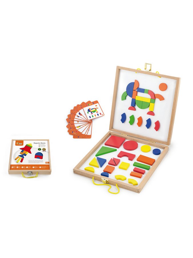 Dřevěný kufřík s magnetickými kostkami Viga. Dřevěný kufr obsahuje 42 kostek a 12 karet s 24 kombinacemi, do kterých je možné umístit kostky. Dítě může tvořit na základě šablony, nebo vytvořit vlastní kombinace. Všechny jsou vyrobeny z vysoce kvalitních materiálů. Magnetické a barevné kostky jsou v různých tvarech, což umožní dítěti vytvořit nové postavy. Při hraní s magnety se dítě naučí pravidla jejich činnosti a vstoupí do světa nového dobrodružství. Vzbuzuje zvědavost a tvořivost. Tato fantastická hračka funguje jako didaktická pomůcka. Hračka pomáhá zlepšit manuální zručnost a obratnost, učí dítě rozpoznat tvary a barvy, zapojuje a rozvíjí smysl pro pozorování. Hračka je vyrobena z lakovaného dřeva. Naší prioritou je bezpečnost a kvalita našich výrobků, a proto barvy použité na hračkách nejsou toxické a splňují bezpečnostní standardy (EN71 a ASTM). Pro děti od 36 měsíců. Hračka je vhodná jako krásný dárek, kterou si vaše děti zamilují.