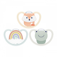 Kojenecký silikonový dudlík NUK Space 1/box 0-6 měsíců s krásným barevným obrázkem zvířátka. Nový dudlík Space s inovativním, moderním designem umožňuje jemné dětské pokožce dýchat. Speciálně určen pro citlivou pokožku dítěte a má robustní, znovu použitelný box pro uskladnění, přepravu a hygienickou sterilizaci v mikrovlnné troubě. Užší a tenčí krček savičky snižuje tlak na čelisti a zoubky. Plošší savička a hladší spodní strana určená pro příjemnější pocit a více prostoru pro přirozené sací pohyby. Přirozený tvar připomíná tvar matčiny bradavky během kojení a podporuje celkový zdravý vývoj miminka. Dudlík je vyroben z vysoce kvalitního plastu a silikonového dudlíku. Výhodou silikonu je to, že je bez zápachu a lehce se čistí. Neobsahuje BPA. Všechny NUK dudlíky jsou pravidelně testovány a sledovány nezávislými instituty.