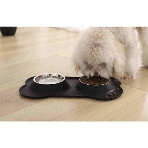 Tento 2v1 set eliminuje problém rozházených misek, které pes posouvá nebo nosí po bytě během jídla.