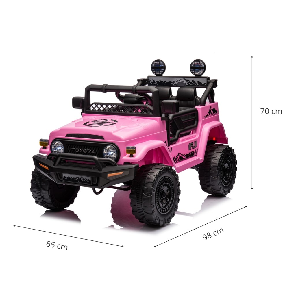 TOYOTA FJ CRUISER poskytne vašemu dítěti skvělou zábavu pro rozvoj motorických dovedností. Je vyrobeno z odolného plastu. Má 12voltovou baterii, dálkové ovládání, přední a zadní světla, zvukové efekty na volantu, dvoje otevírací dveře a bezpečnostní pásy - tím vším se odlišuje od ostatních vozidel tohoto typu a dělá hru ještě zábavnější!