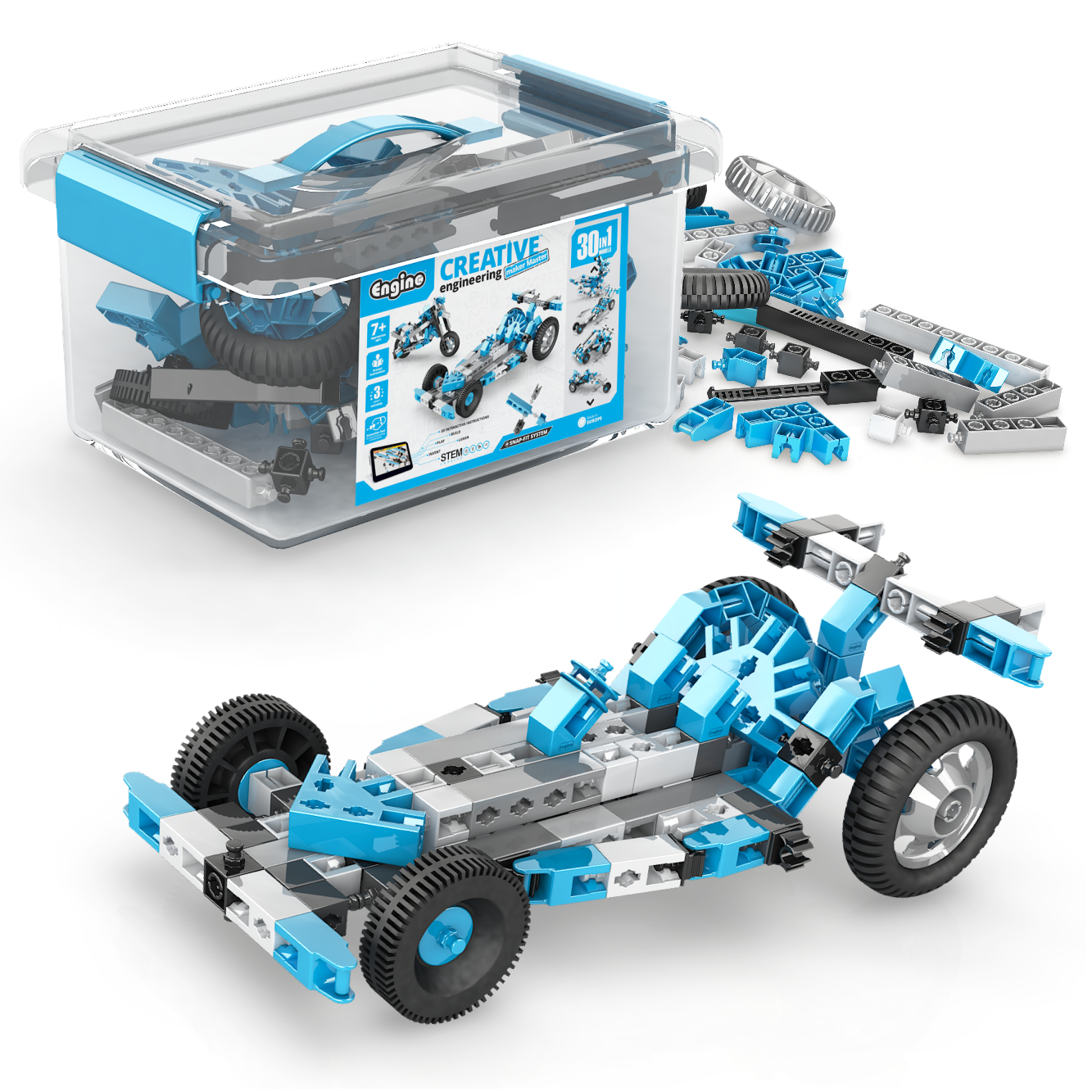 možnost sestavit 30 modelů, aplikace Engino kidCAD zobrazující 3D model