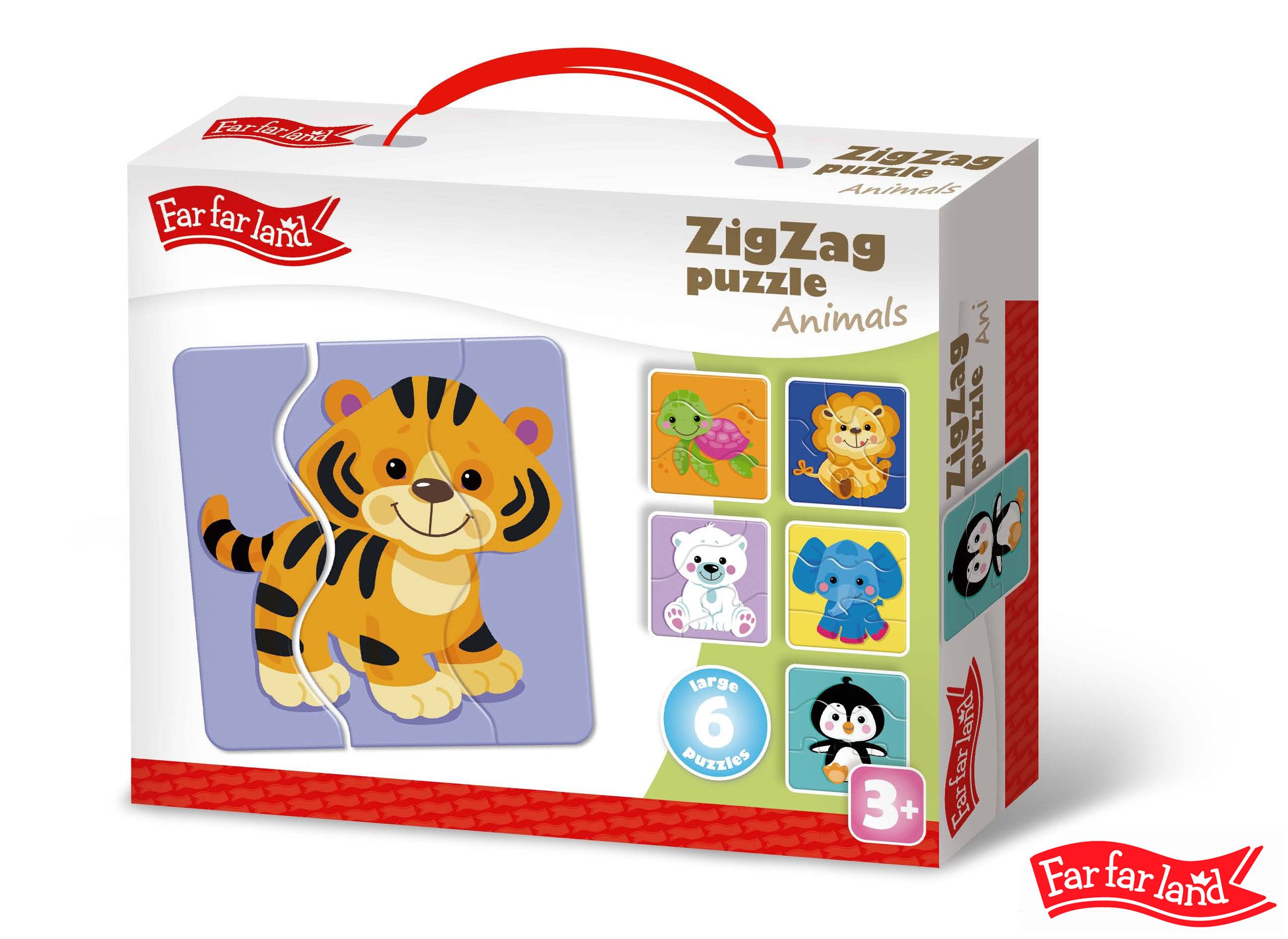 Far Far Land Puzzle ZigZag vlnky, motiv zvířátka. Balení obsahuje 6 puzzle obrázků.