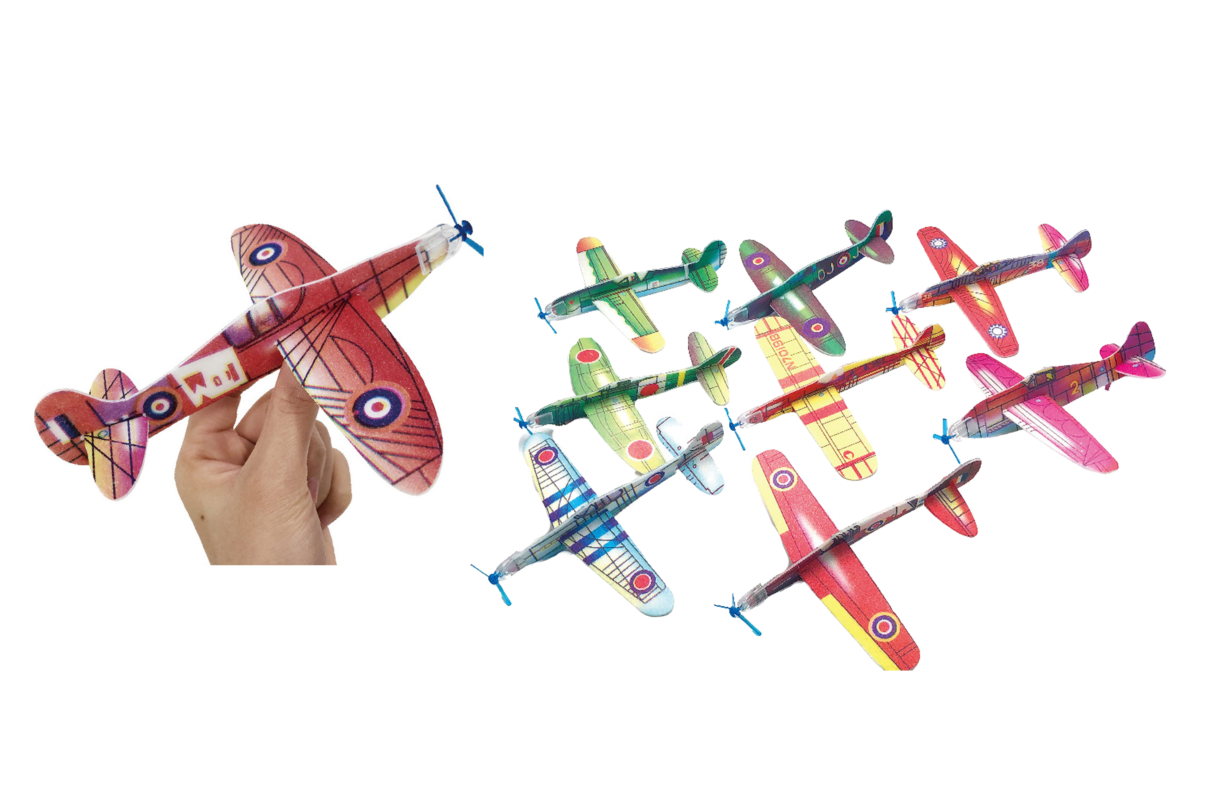 Házecí letadla 2 ks. Rozměry 17x17x3,5 cm. 36 ks display box. 12 barevných variant.