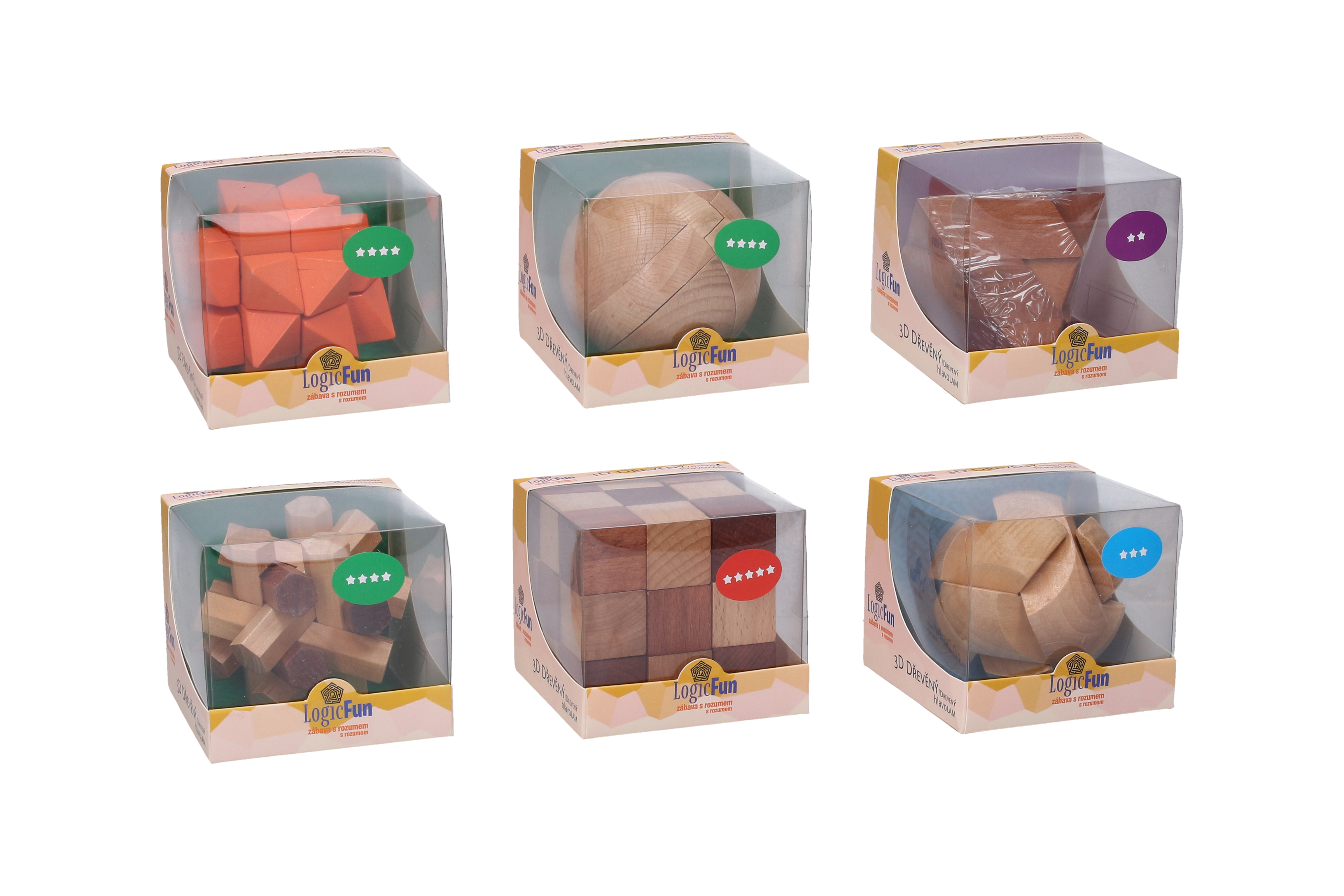 Hlavolamy - dřevěné 3D - 6 druhů Věk 6+