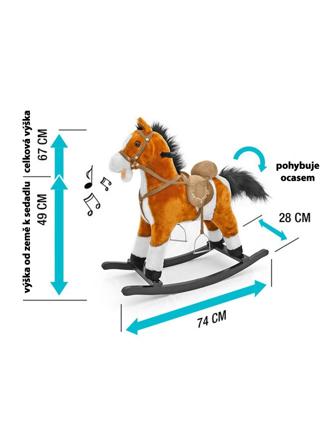 - koník má sedlo s třmeny, uzdu a dřevěné rukojeti