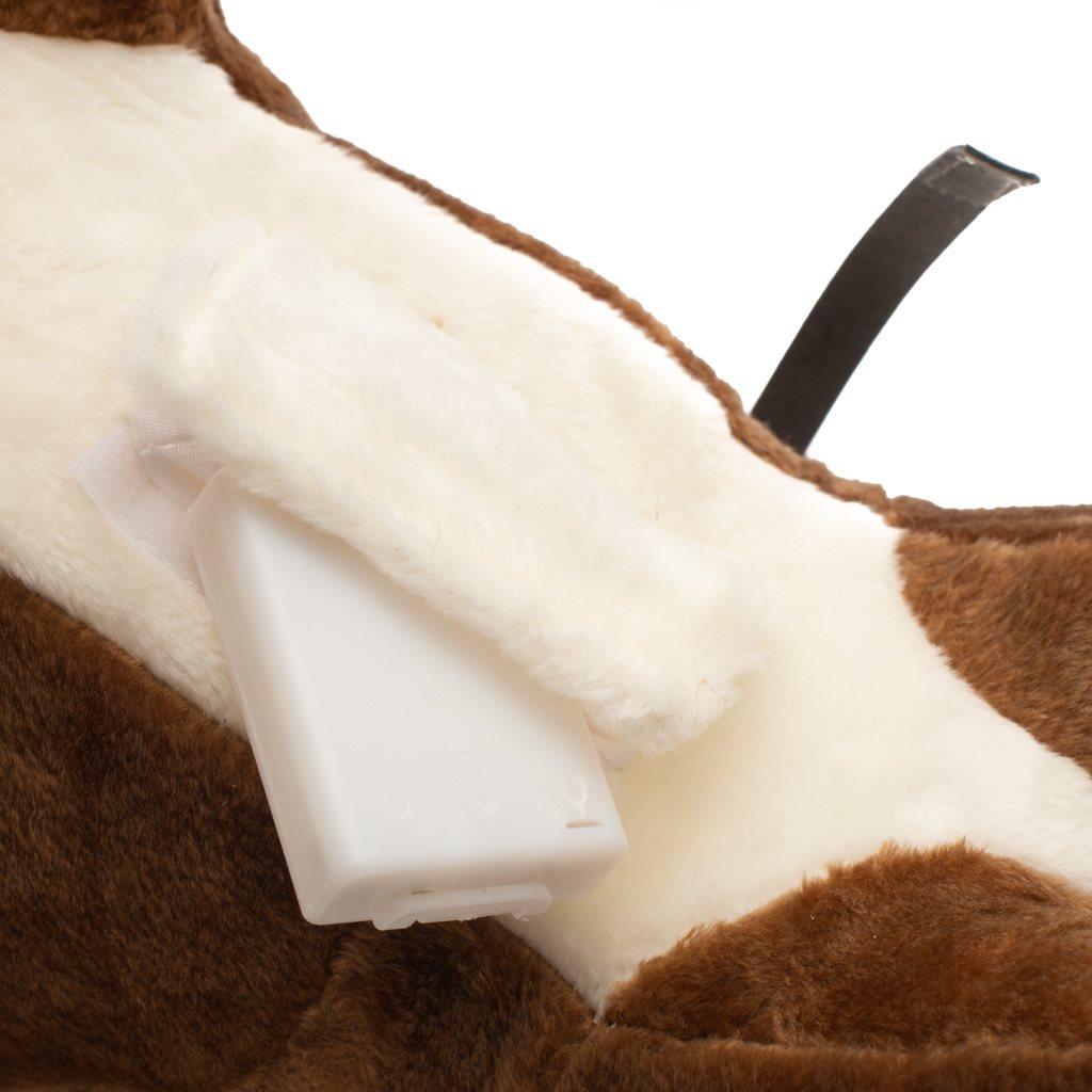 Krásný houpací koník PlayTo byl navržen pro děti, které mají rády houpání a dobrodružství. Je vyroben z hebkého a velmi příjemného na dotyk plyšového materiálu. Po stisknutí ouška koník pohybuje tlamičkou a přehraje českou písničku "Prší, prší, jen se leje" nebo po stisknutí druhého ouška slovenskou verzi "Prší, prší, len sa leje". Baterie se vkládají do pouzdra umístěného na bříšku. Hračka pomáhá dítěti rozvíjet koordinaci pohybů a podňecuje jeho představivost. Houpací lišty lze jednoduše odšroubovat.