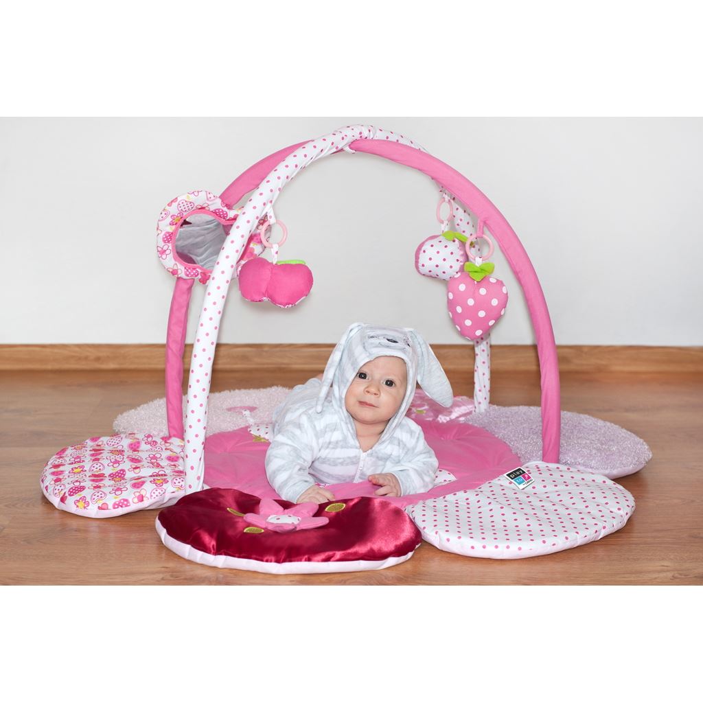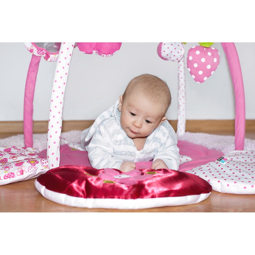Krásná originální vzdělávací hrací deka PlayTo s hrazdou rozvíjí dětskou představivost díky poznávání barev a tvarů. Hrací deka ve tvaru kytičky je v krásné zářivé barvě. Rozvíjí smysly hmatu, zraku i sluchu díky šustícím a pohyblivým částem. Příjemný a měkký materiál umožňuje pohodlné ležení na bříšku nebo zádech a umožňuje svobodu pohybu Vašeho dítěte. Miminko tak může získat bezpečný útulnější prostor a motivuje ke zvedání děťátka. Hračky lze z hrazdičky snadno sundat. Každé miminko si na dece najde svou oblíbenou hračku. Patří tu zrcadlo, suštící části, plyšová hračka s pískátkem, plyšová hračka s kousátkem, plyšová hračka s rolničkou. Lze ji použít doma i venku. Díky jednoduché konstrukci a dodávané tašce lze deku lehce přenášet. Hračky lze odepnout a používat samostatně. Pořiďte Vašemu miminku pohádkové místo pro hraní i odpočinek. Pro PlayTo je důležitá vaše spokojenost a pohodlí vašeho miminka. Právě proto vám nabízíme tuto roztomilou, pohodlnou a velmi měkoučkou hrací deku. Nadýchaná květinka poskytne miminku dokonalý komfort. Deka vám zaručí ideální podložku pro děťátko v batolecím věku. Pokud deku zrovna nepoužíváte, snadno ji složíte a uchováte tak před prachem nebo případným poškozením. Deku rozložíte zpět během minutky. Rozměry: průměr: cca 100 cm, výška cca 54 cm. Vhodné pro děti od 3 měsíců.