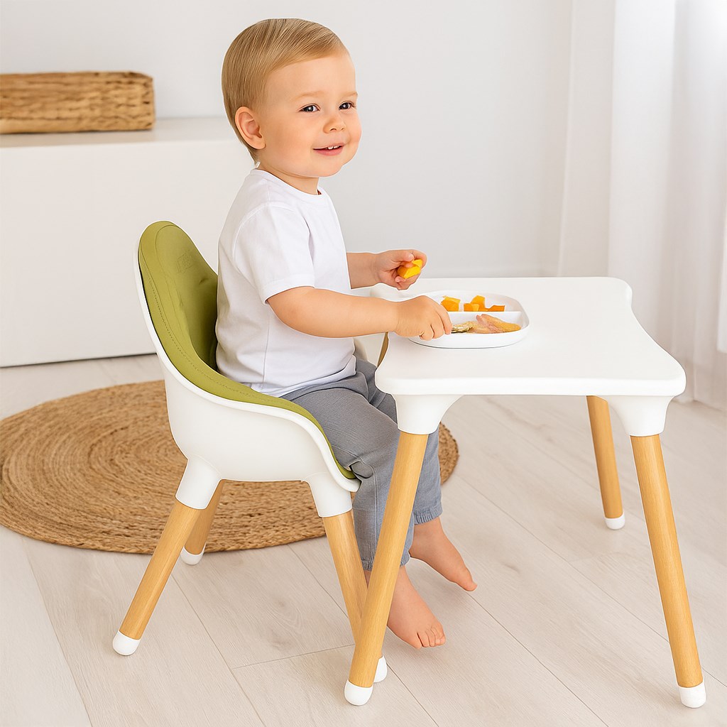 -Jídelní židlička, která kombinuje 3 funkce: vysoká a nízká jídelní židlička nebo sada stůl a židle.